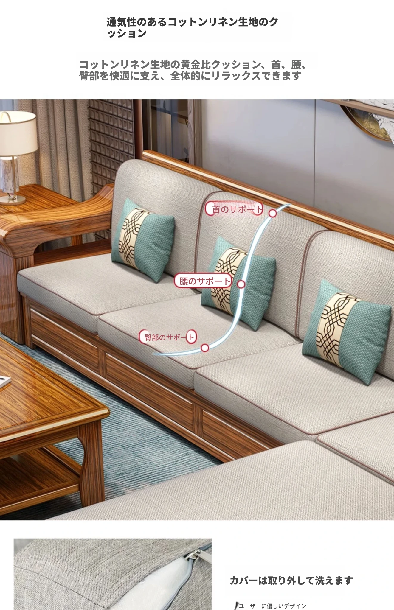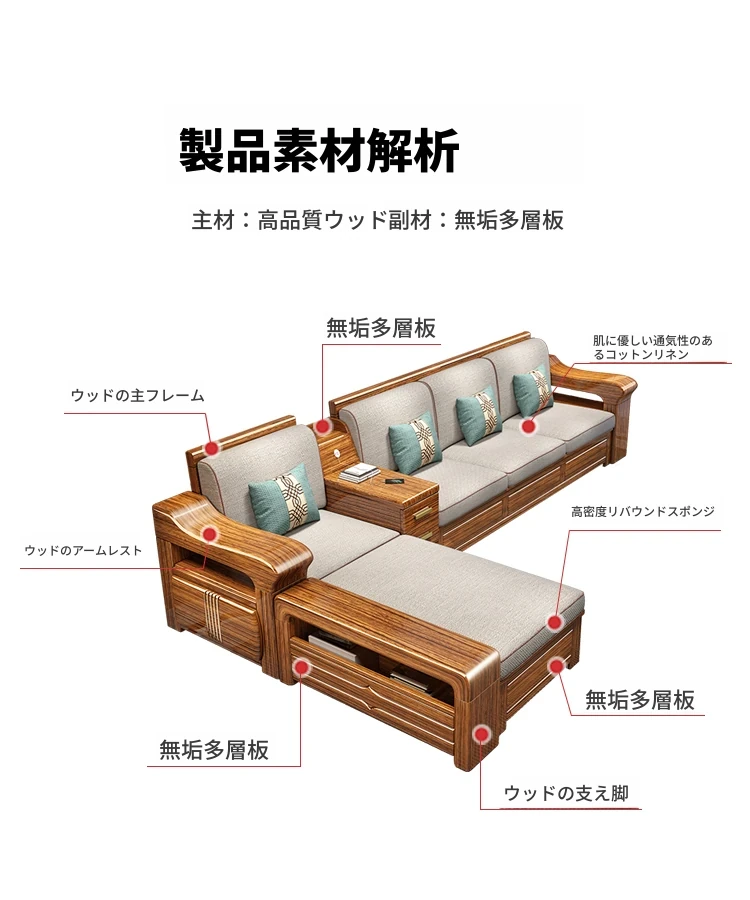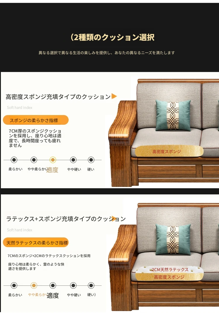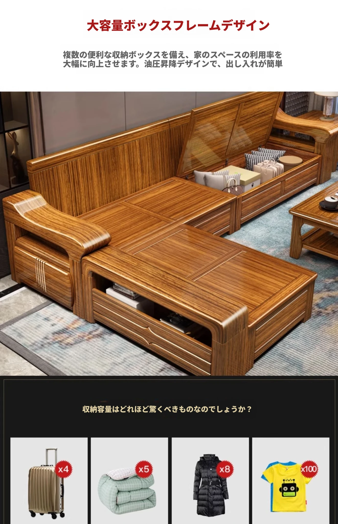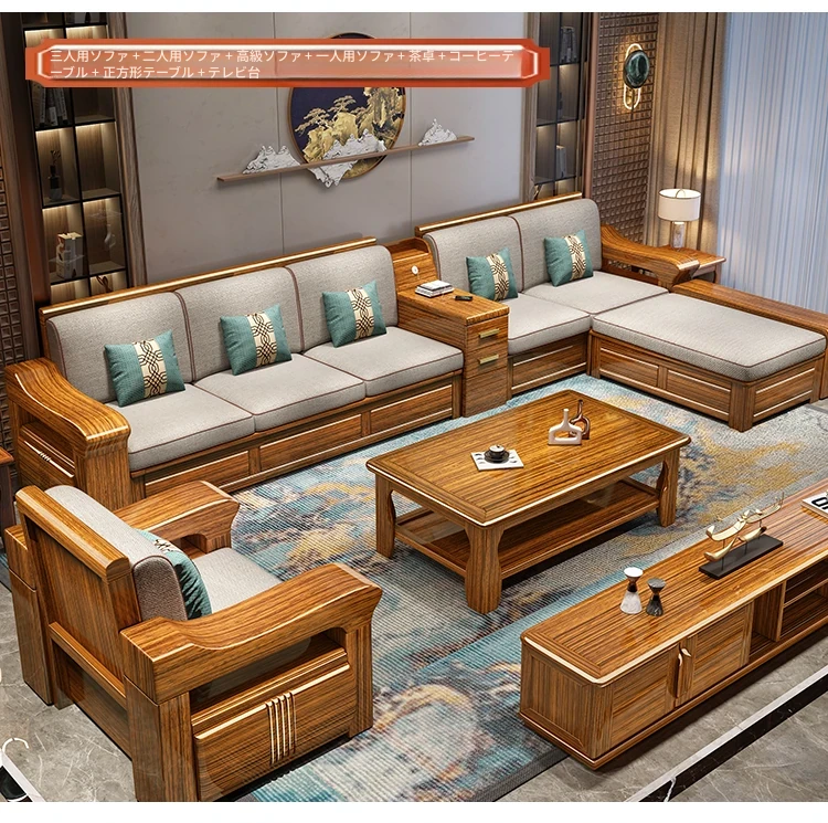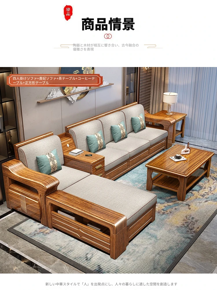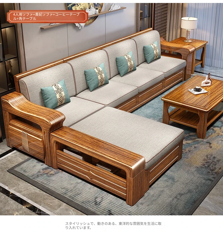 ウコンウッド無垢材ソファ 冬夏兼用 中式リビング全室セット モダンシンプル収納付き全無垢家具 - 高級感あふれるデザインで、快適な空間を演出します!