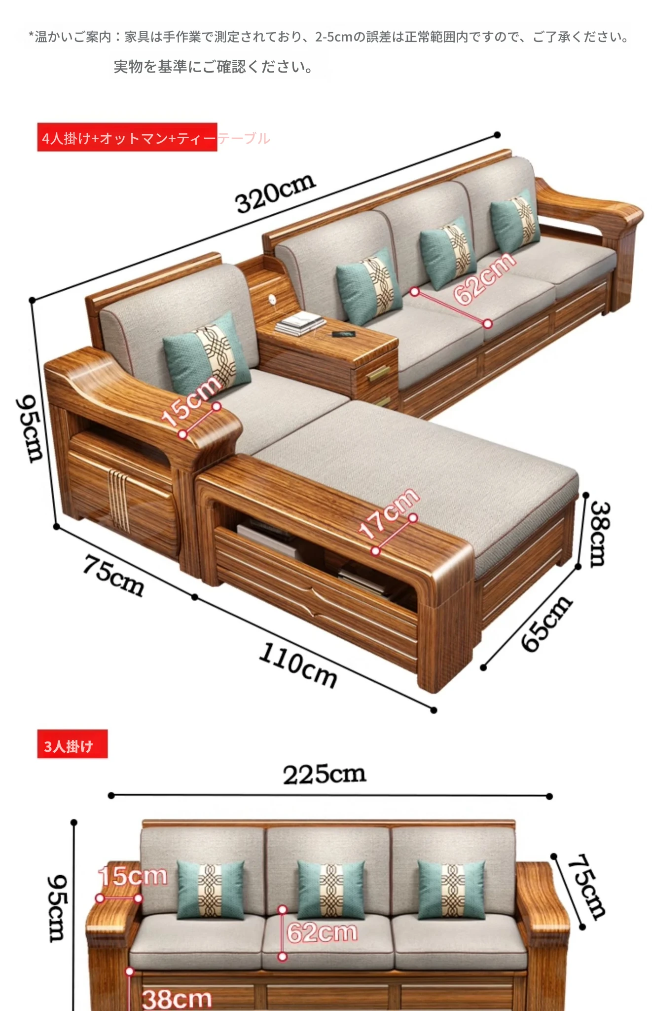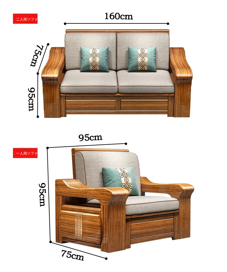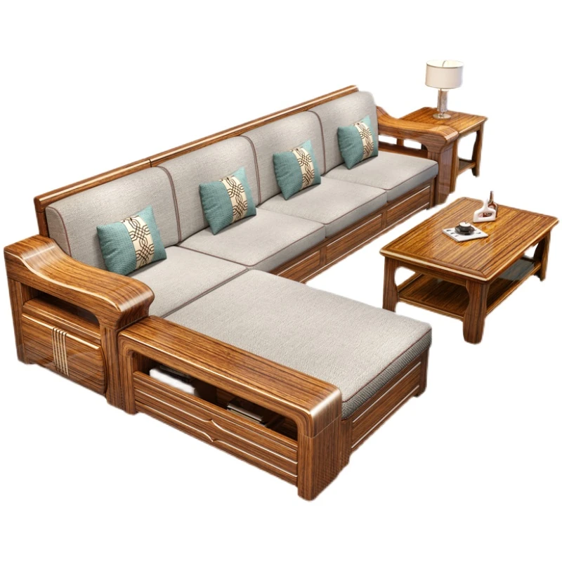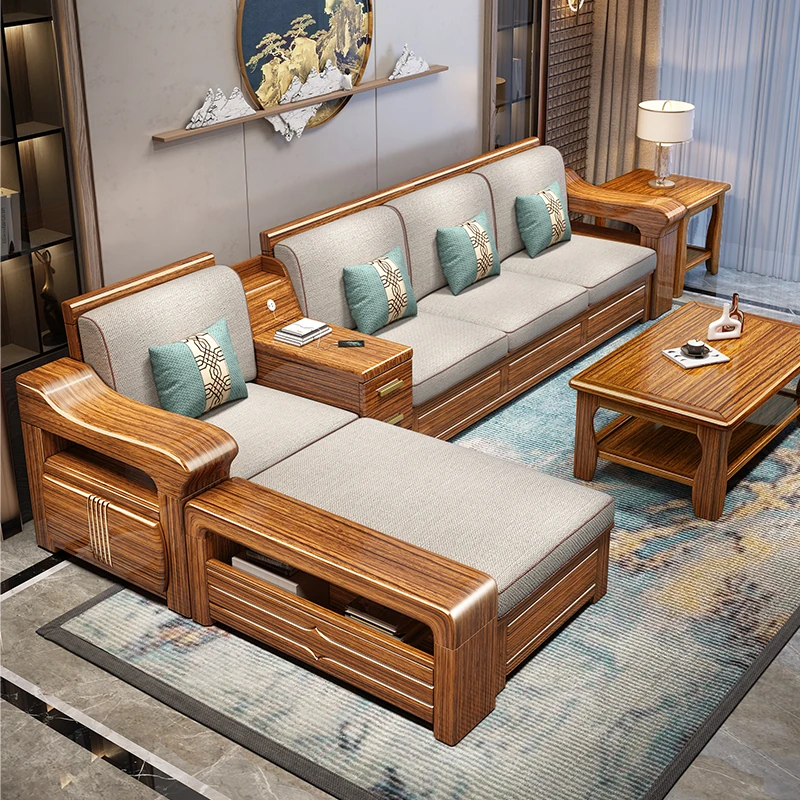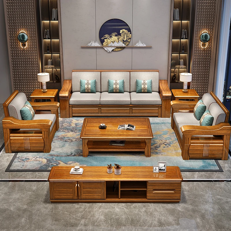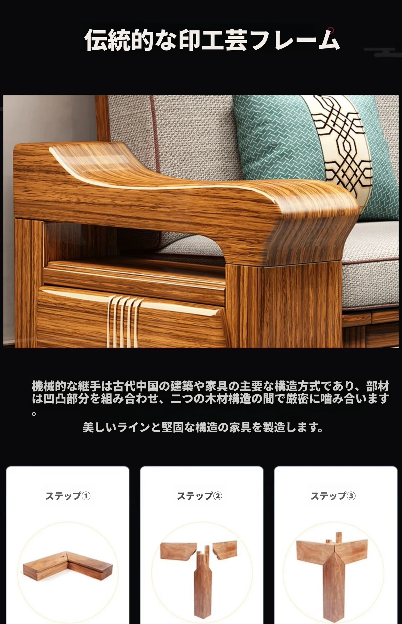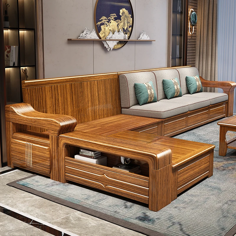 ウコンウッド無垢材ソファ 冬夏兼用 中式リビング全室セット モダンシンプル収納付き全無垢家具 - 高級感あふれるデザインで、快適な空間を演出します!