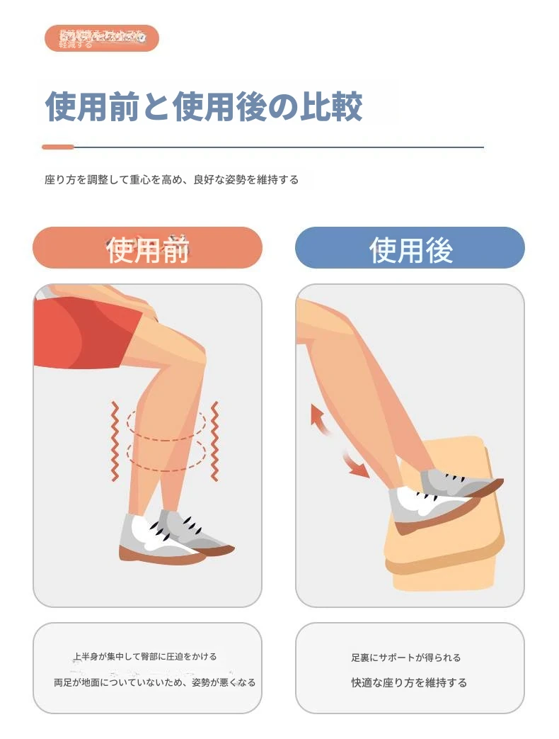 デスク下の足置き台!足を組むのを防ぎ、快適なオフィスライフをサポートする人気アイテム。リラックスしながら仕事ができる、足をしっかり支える設計で、トイレでも大活躍!