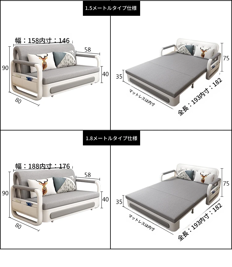 1.8メートルスポンジ 収納付き アップグレード木製収納