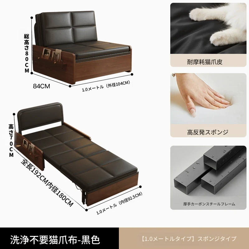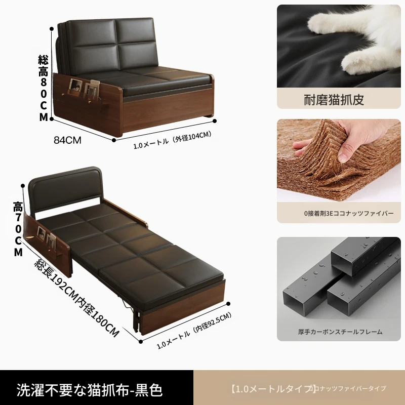 【レトロキャットクロー皮 | 背中サポートココナッツ】1.0mソファベッド-黒(組み立て別)