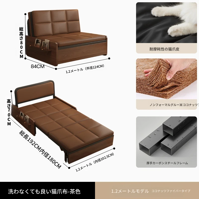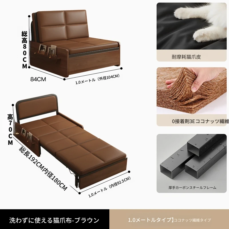 【レトロキャットクロー皮 | 背中サポートココナッツ】1.0mソファベッド-茶色(組み立て別)