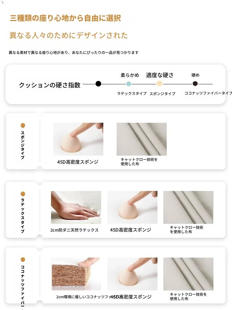 1.07メートル【肌触りの良いキャットスクラッチ布 | 背中を守るココナッツ】収納なし