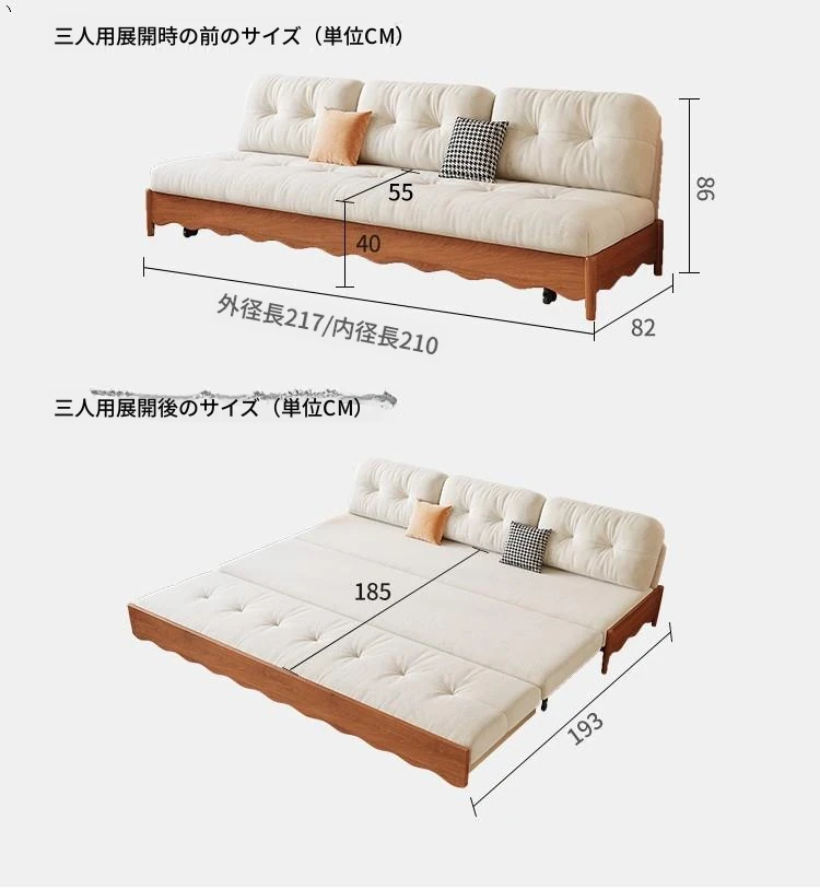2.17メートル【肌触りの良いキャットスクラッチ布 | 高密度ウレタン】収納なし
