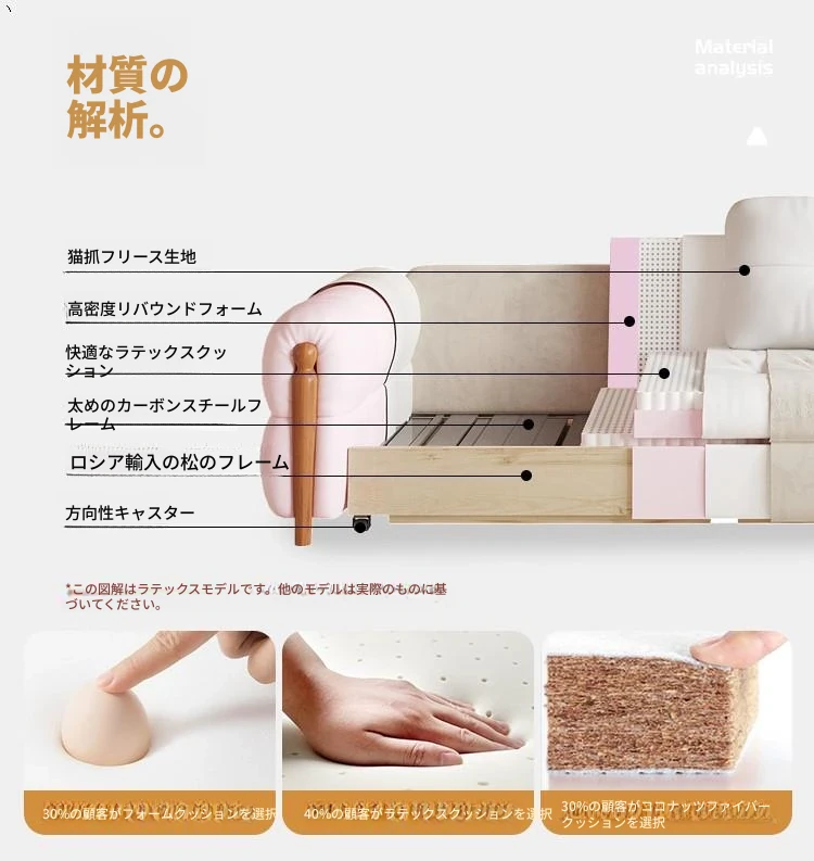 2.17メートル【肌触りの良いキャットスクラッチ布 | 背中を守るココナッツ】収納なし