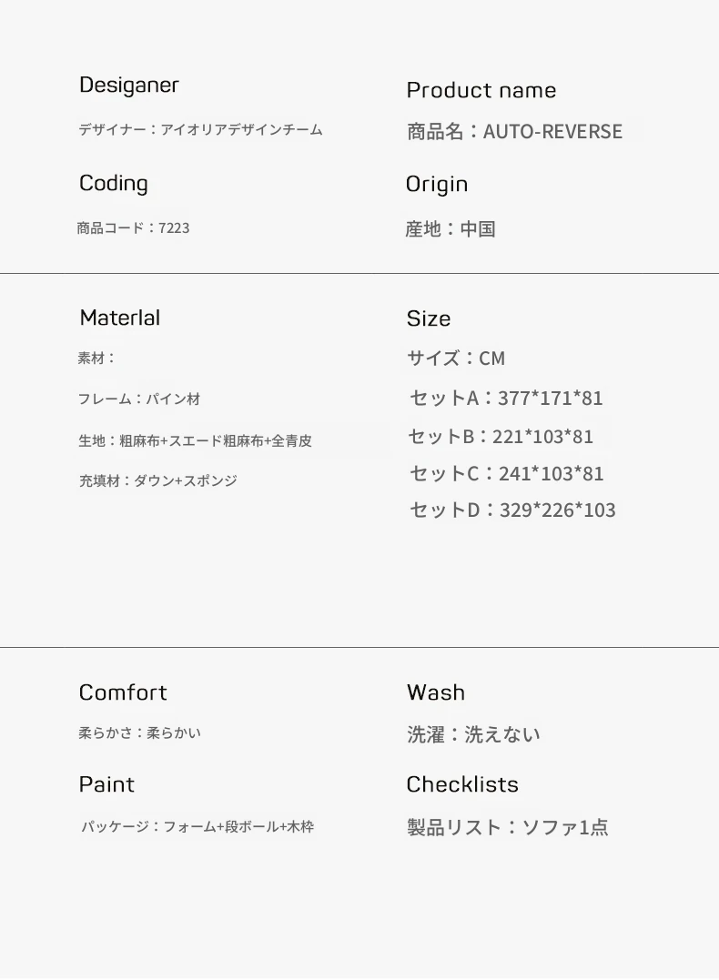 【コンビネーションD】ラフリネン+全青皮/329cm