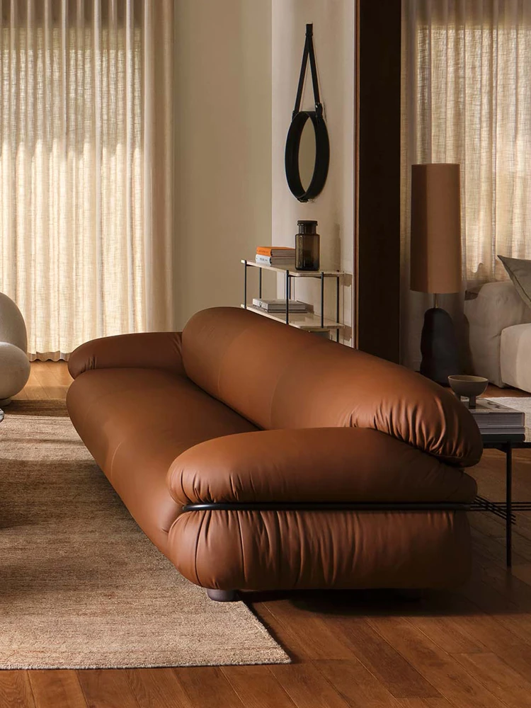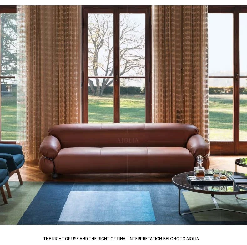 イタリアンデザインの全皮革ソファ!高級感あふれる本革使用、2.4メートルのオレンジ色レトロソファで、上質な空間を演出します。おしゃれで洗練されたインテリアにぴったり!