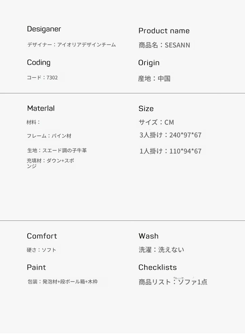 【三人用】カーフレザー/240cm 【三人用】カーフレザー/240cm