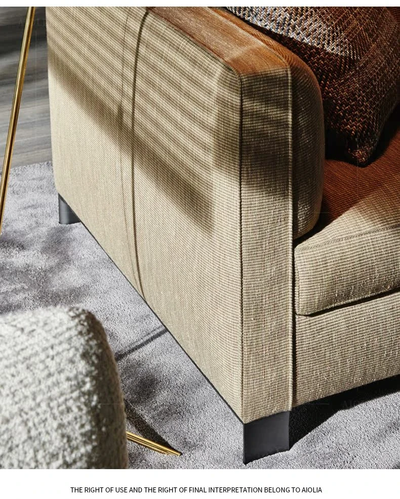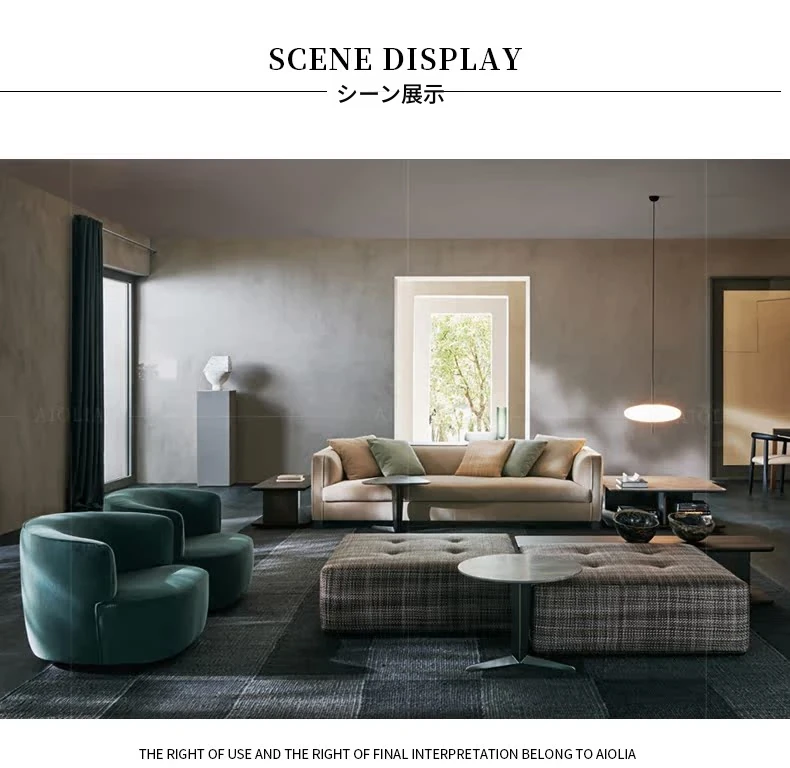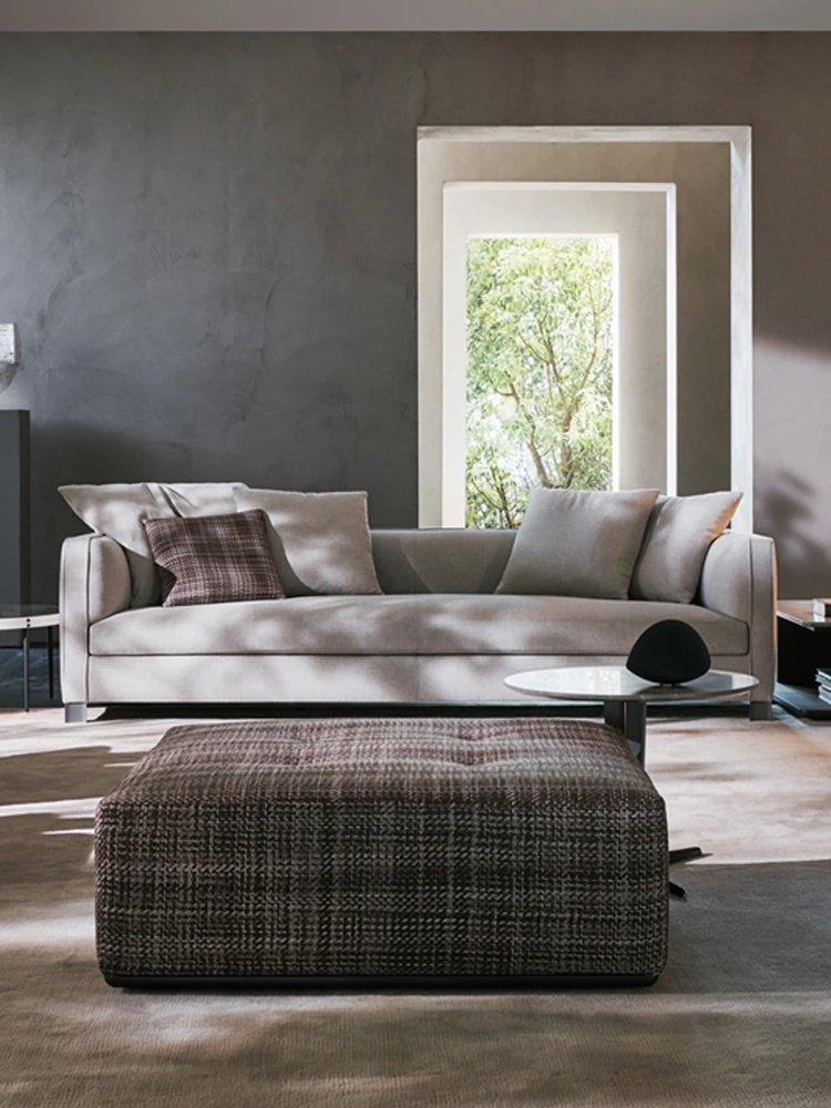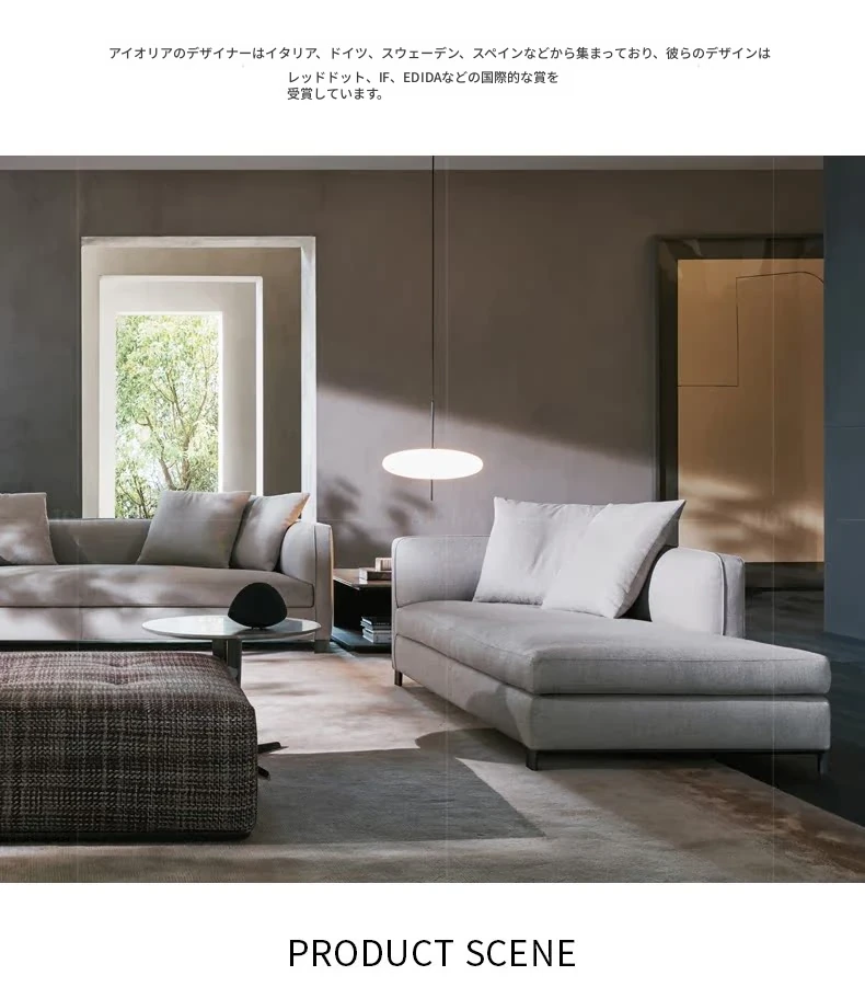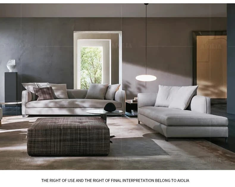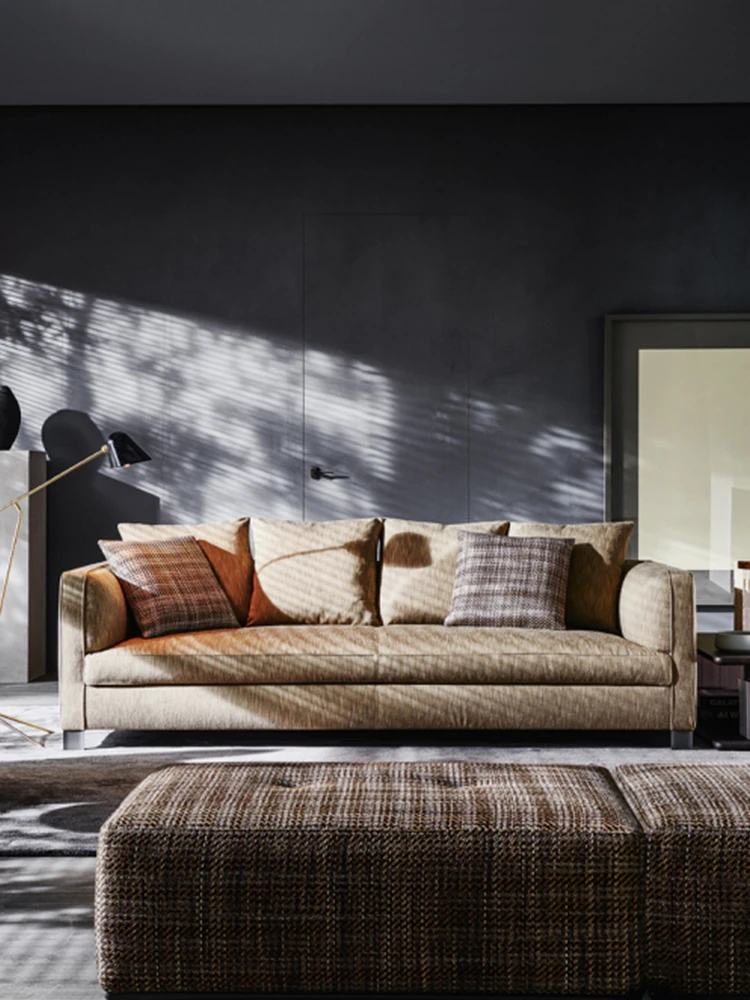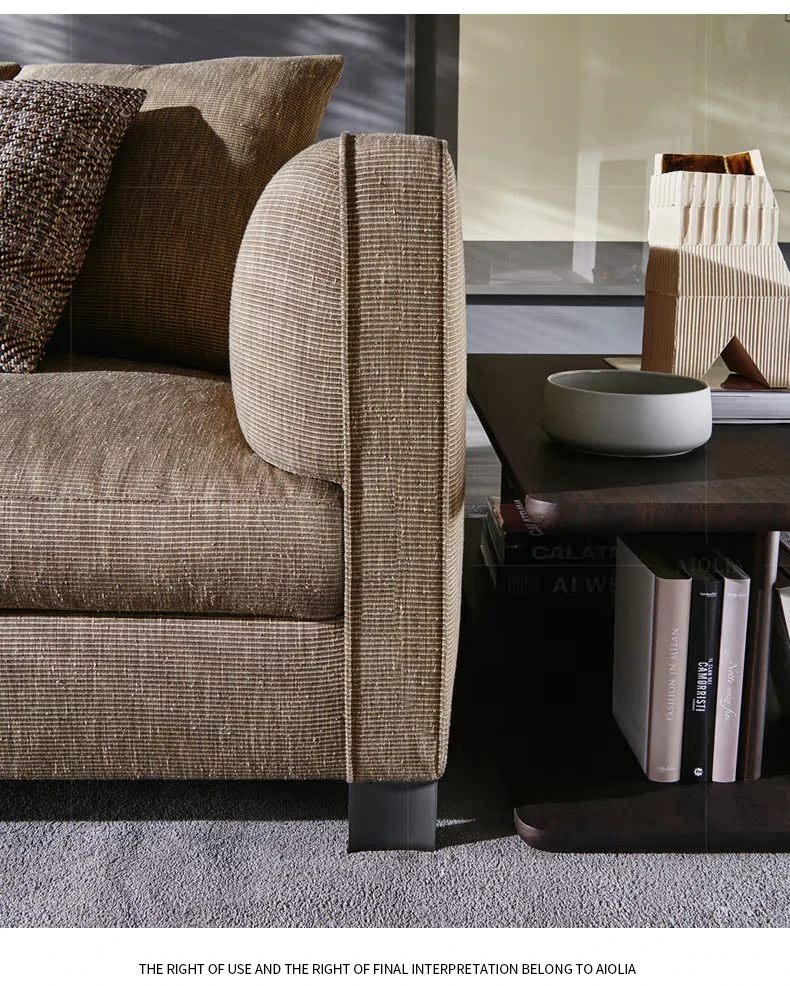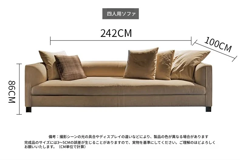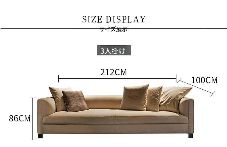 イタリアンミニマリストスタイルの小型4人掛けソファ|ロフトタイプのコンパクトアパートに最適な侘び寂び風のサンドブラスト生地ソファ|シンプルでおしゃれな空間を演出!