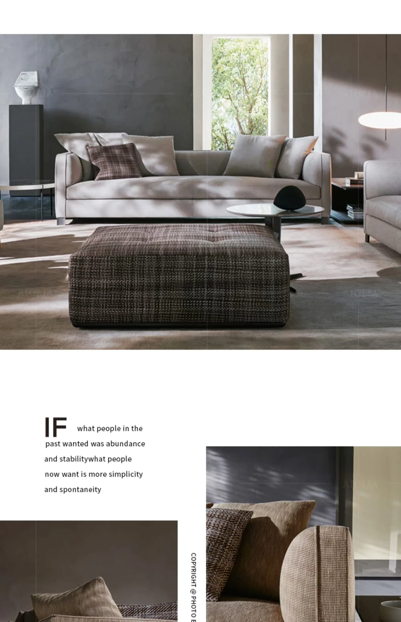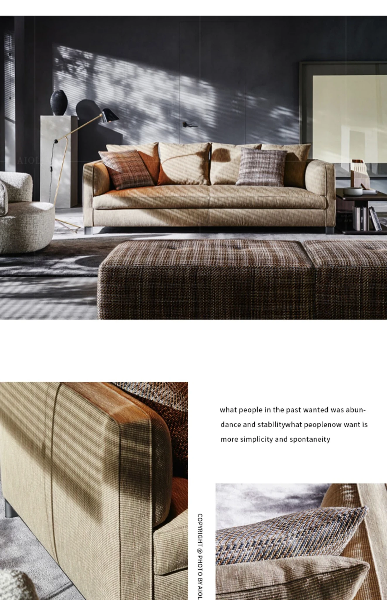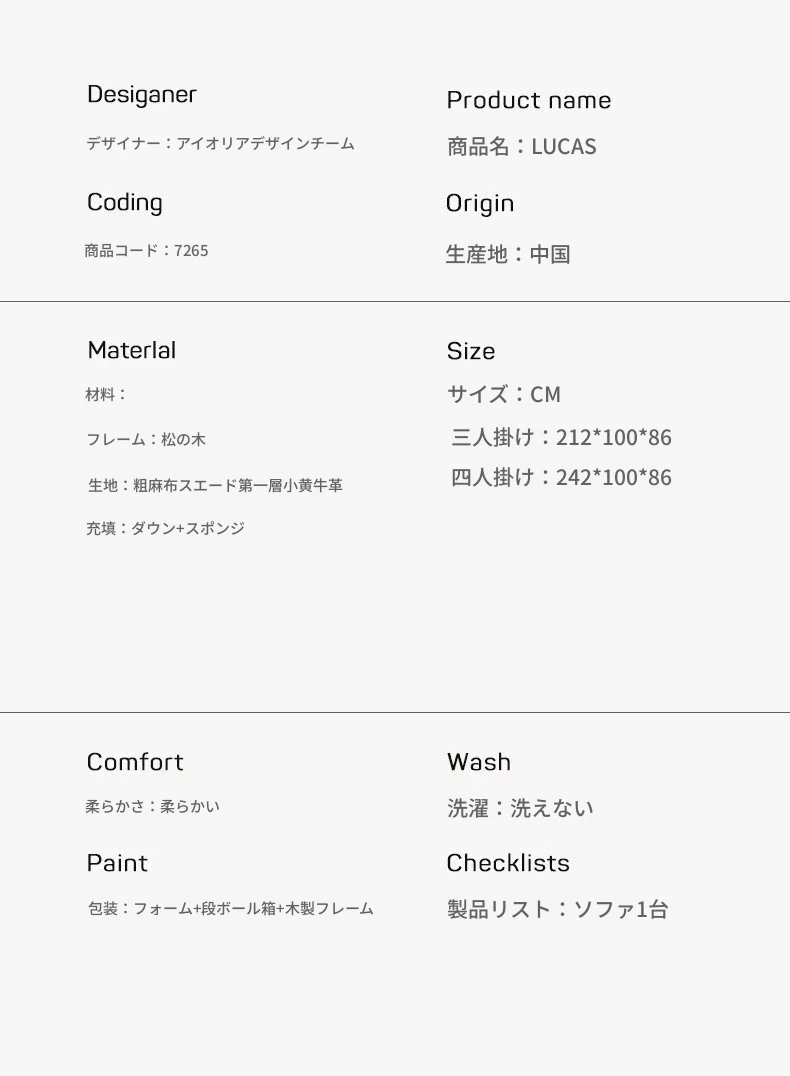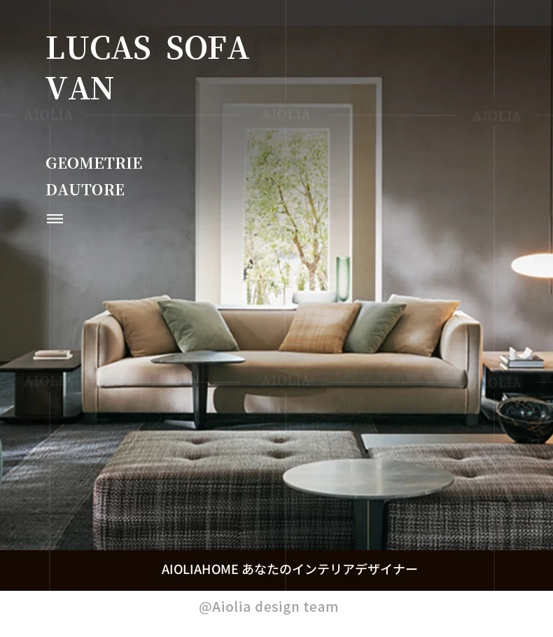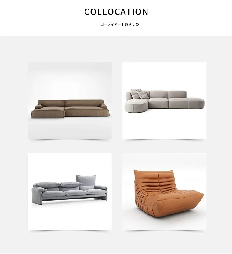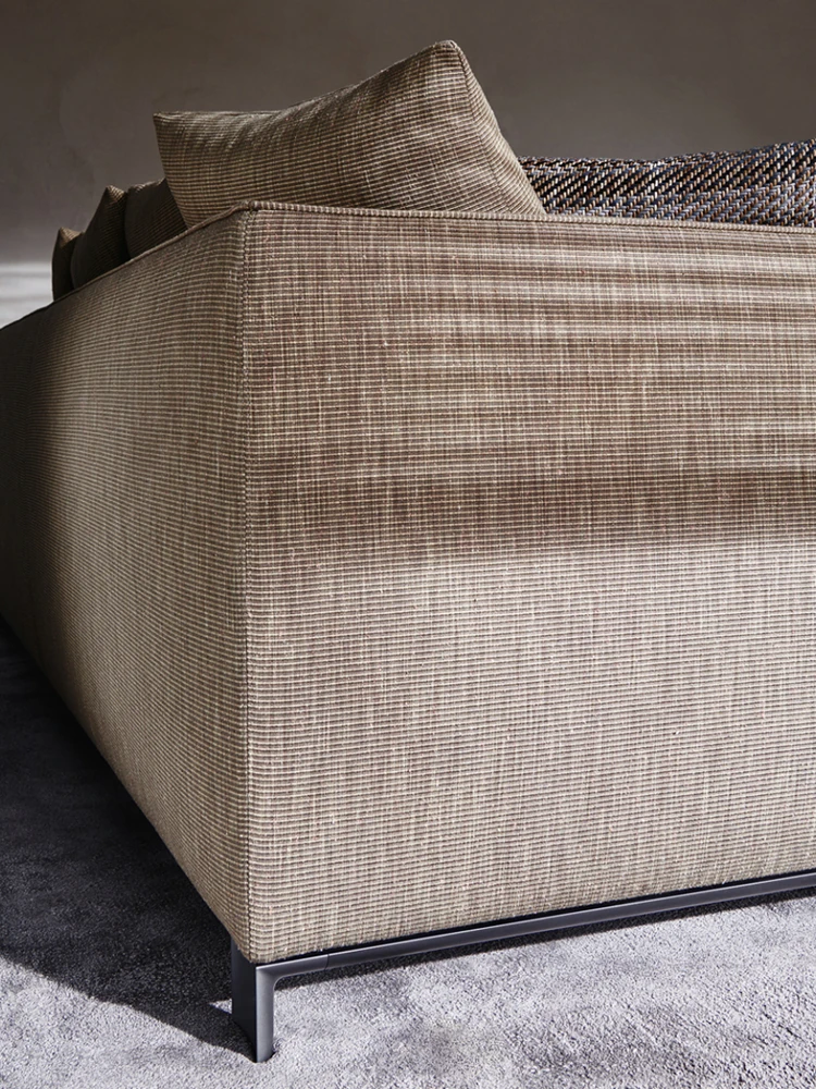 イタリアンミニマリストスタイルの小型4人掛けソファ|ロフトタイプのコンパクトアパートに最適な侘び寂び風のサンドブラスト生地ソファ|シンプルでおしゃれな空間を演出!