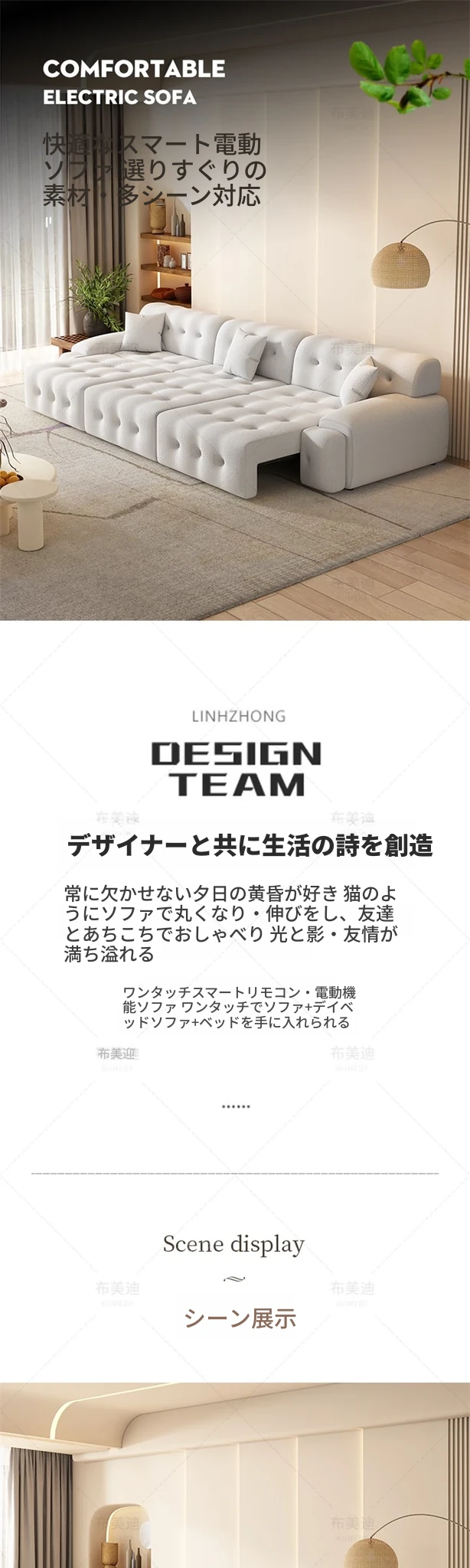 イタリアンミニマルデザインのローチボール電動機能付き!人気のストレッチ式スリムソファ、コンパクトな3人掛けで小スペースにも最適!おしゃれで快適なリビング空間を実現します。
