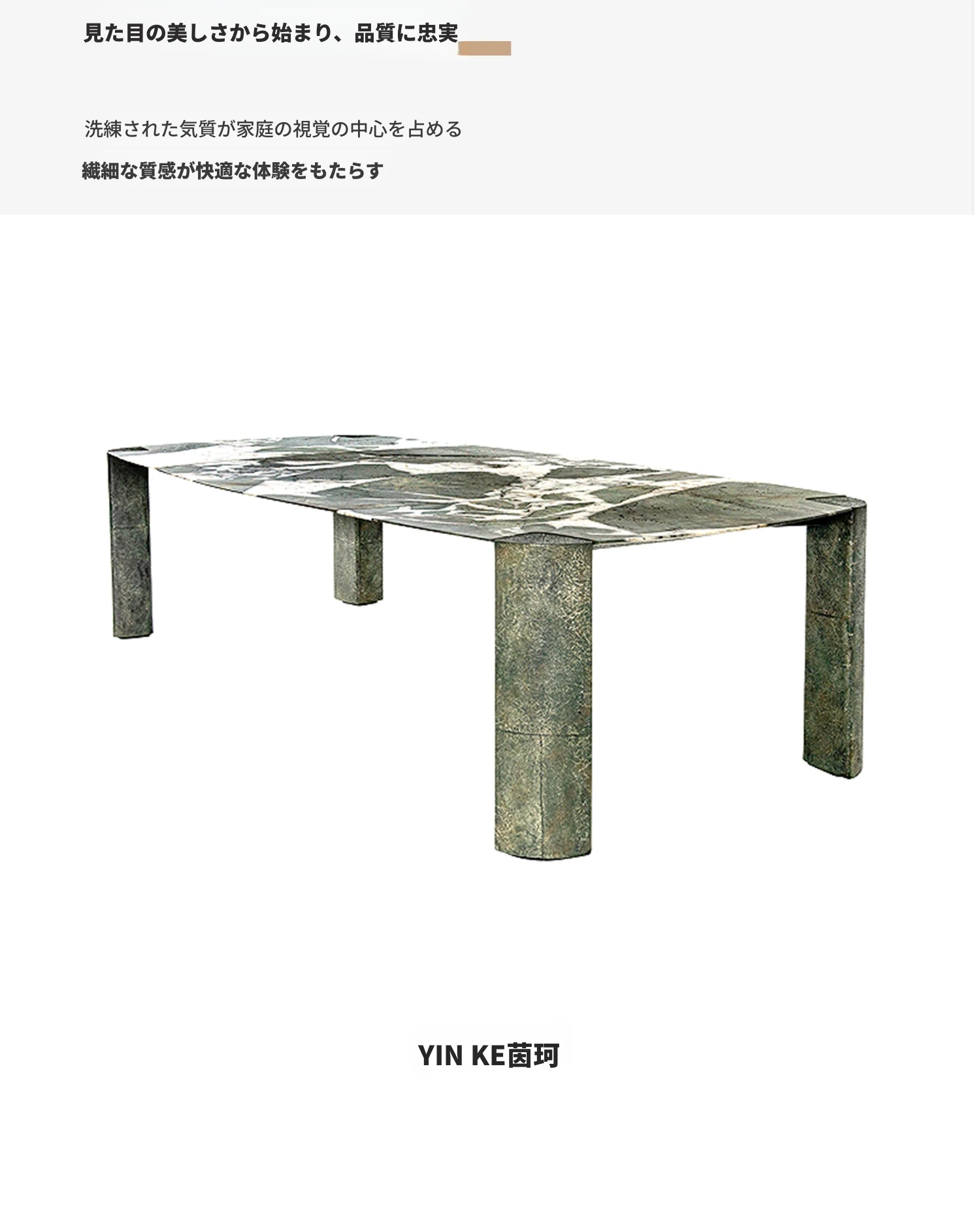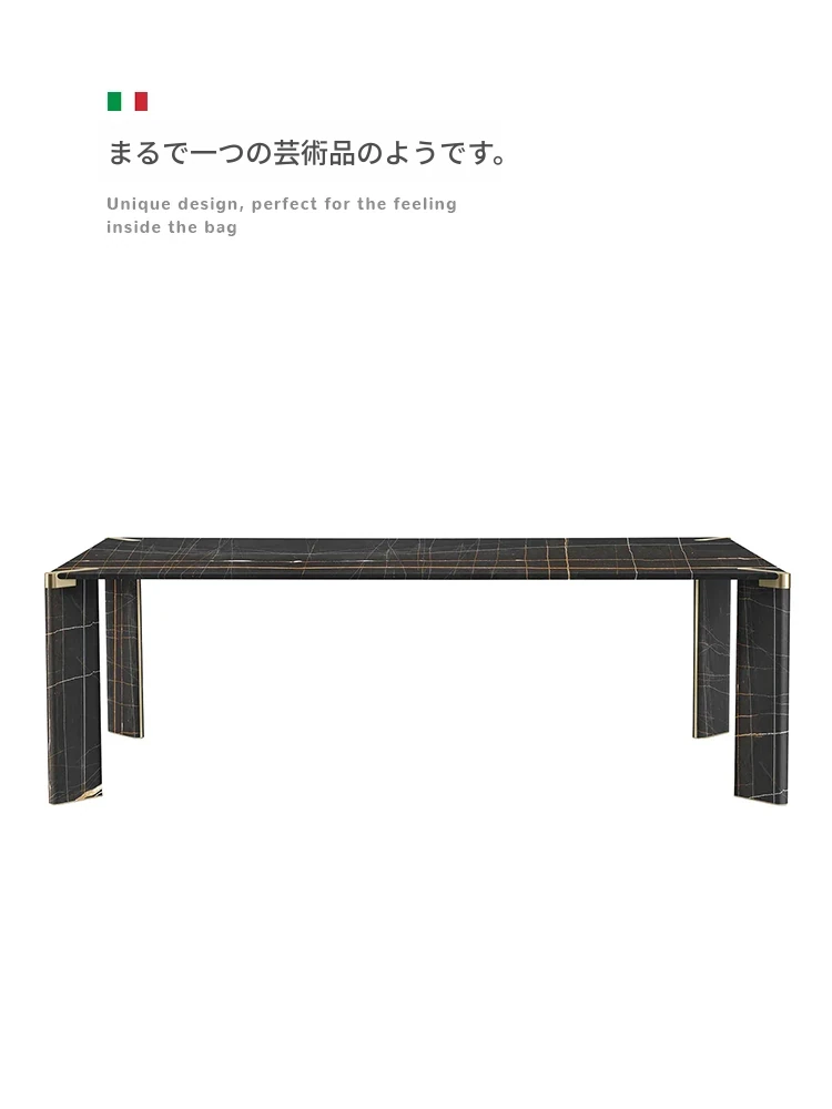 イタリアンミニマリズムの極薄クリスタルストーンダイニングテーブル|高級小型住宅向けのシンプルでモダンな大理石製|厚手のダイニングチェアセット|スタイリッシュなロングテーブルで、洗練された空間を演出!