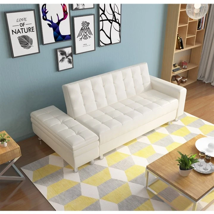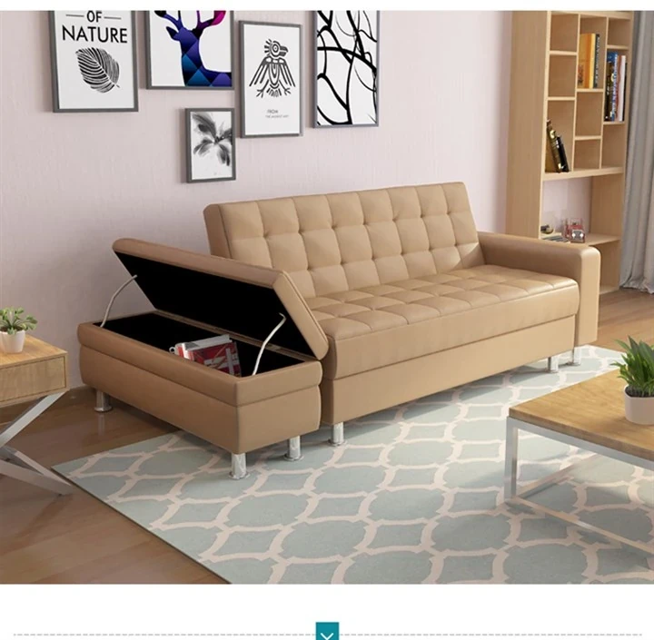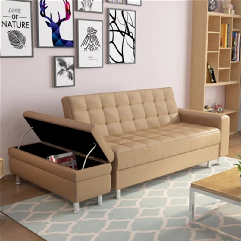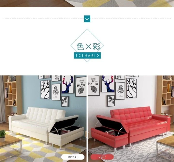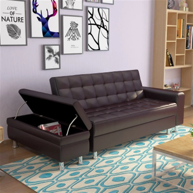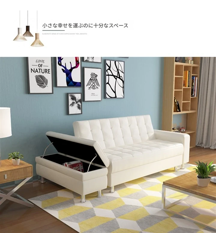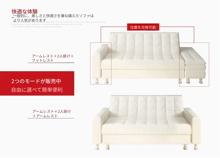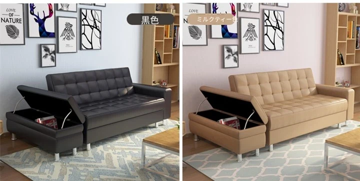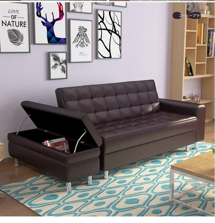 収納機能付き折りたたみ式ジャパニーズレザーソファベッド - スペースを有効活用!小型リビングや寝室、書斎に最適な多機能ソファ!