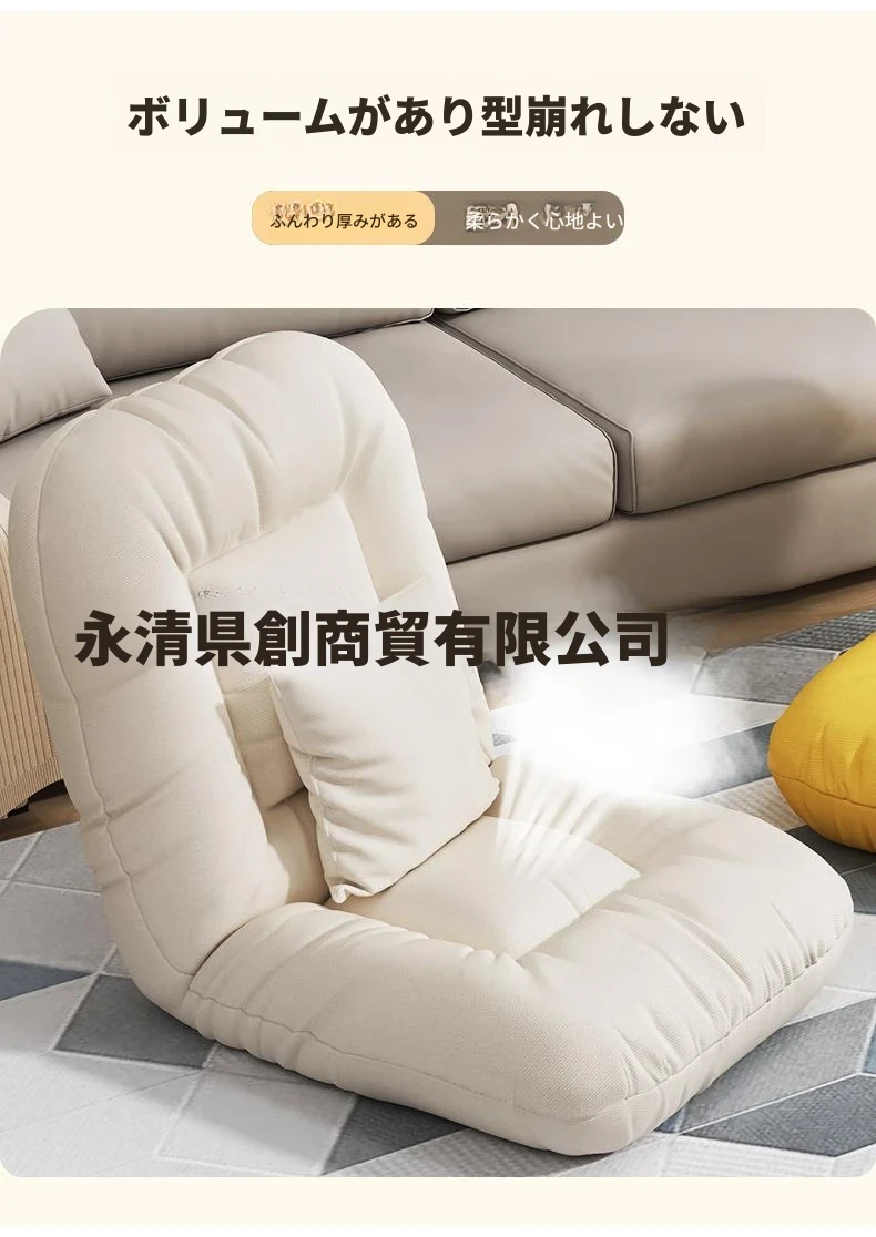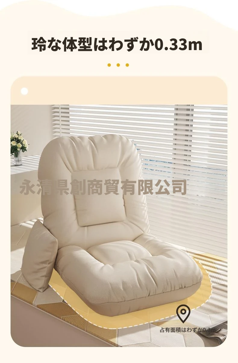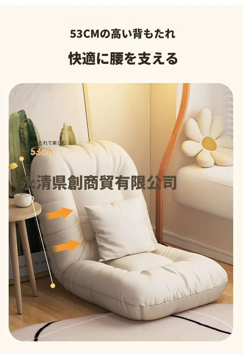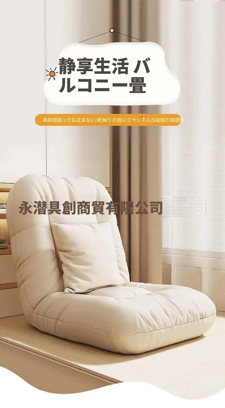 リラックスソファ!寝転びもできる、快適な背もたれ付きの一人用ソファ。畳や窓辺でも使える万能アイテム。バルコニーにもぴったりな、くつろぎのひとときを提供します。