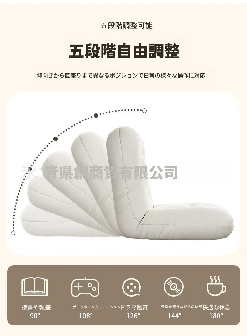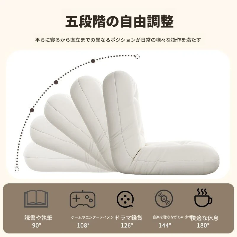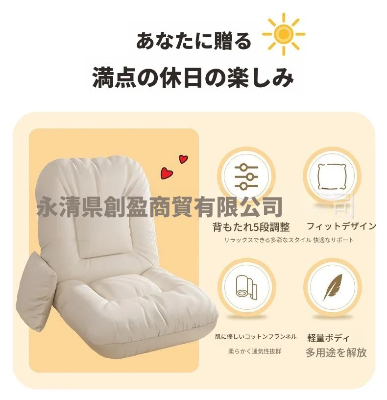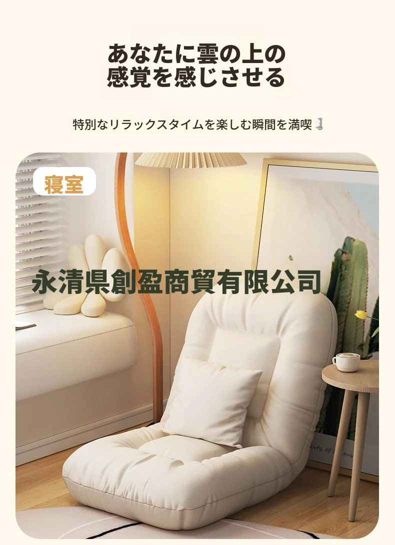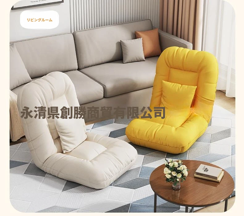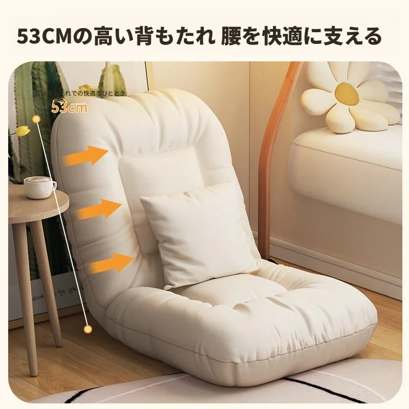 リラックスソファ!寝転びもできる、快適な背もたれ付きの一人用ソファ。畳や窓辺でも使える万能アイテム。バルコニーにもぴったりな、くつろぎのひとときを提供します。