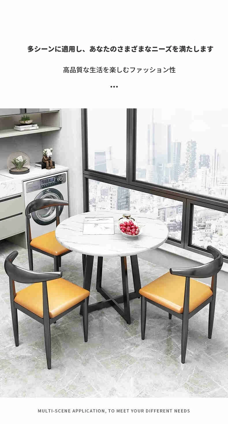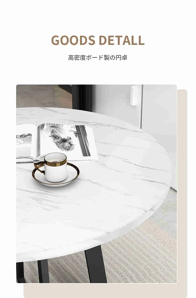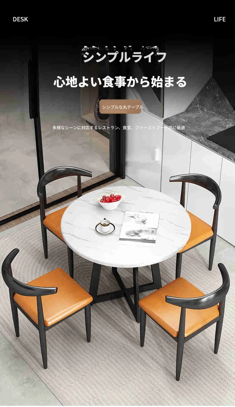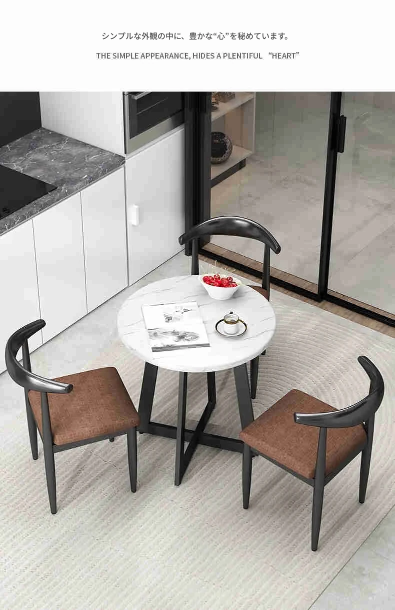 ルンシャン おしゃれな小丸テーブルと椅子のセット - 北欧風のシンプルなデザインで、カフェや店舗の接客にも最適!リラックスした雰囲気を演出し、仮木材の質感が魅力的。