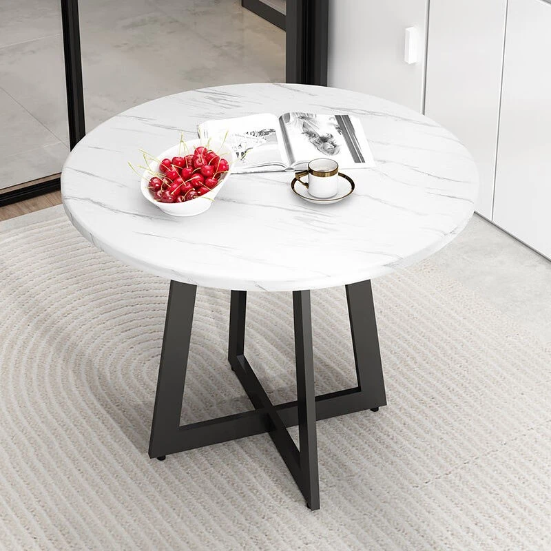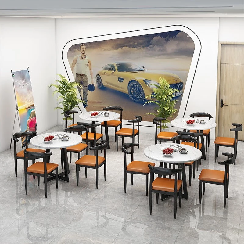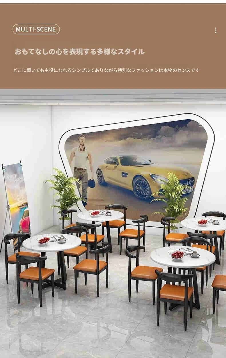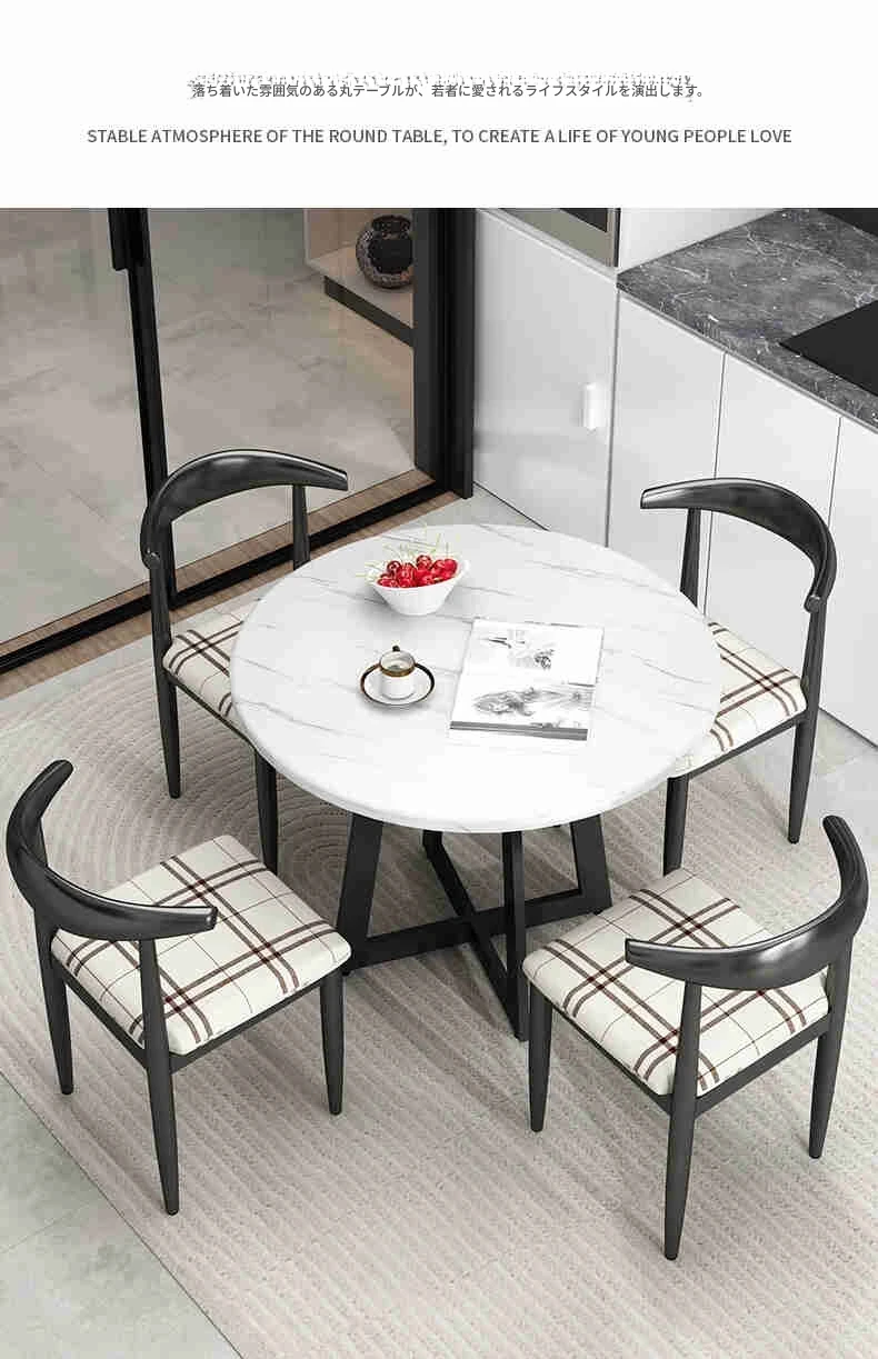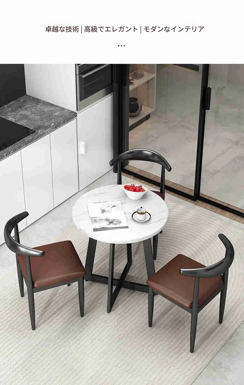 ルンシャン おしゃれな小丸テーブルと椅子のセット - 北欧風のシンプルなデザインで、カフェや店舗の接客にも最適!リラックスした雰囲気を演出し、仮木材の質感が魅力的。