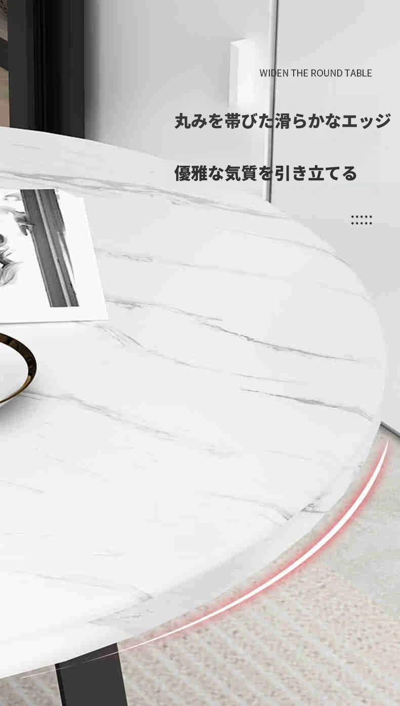 80円丸テーブルと4つの椅子 - ホワイトレザー