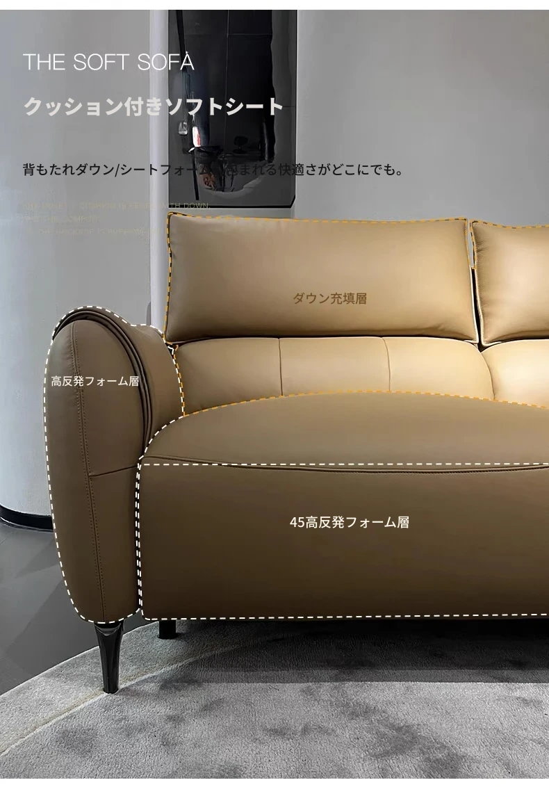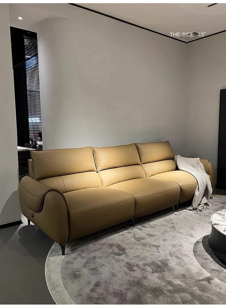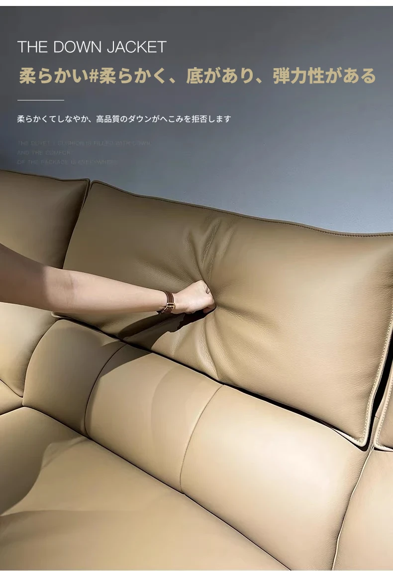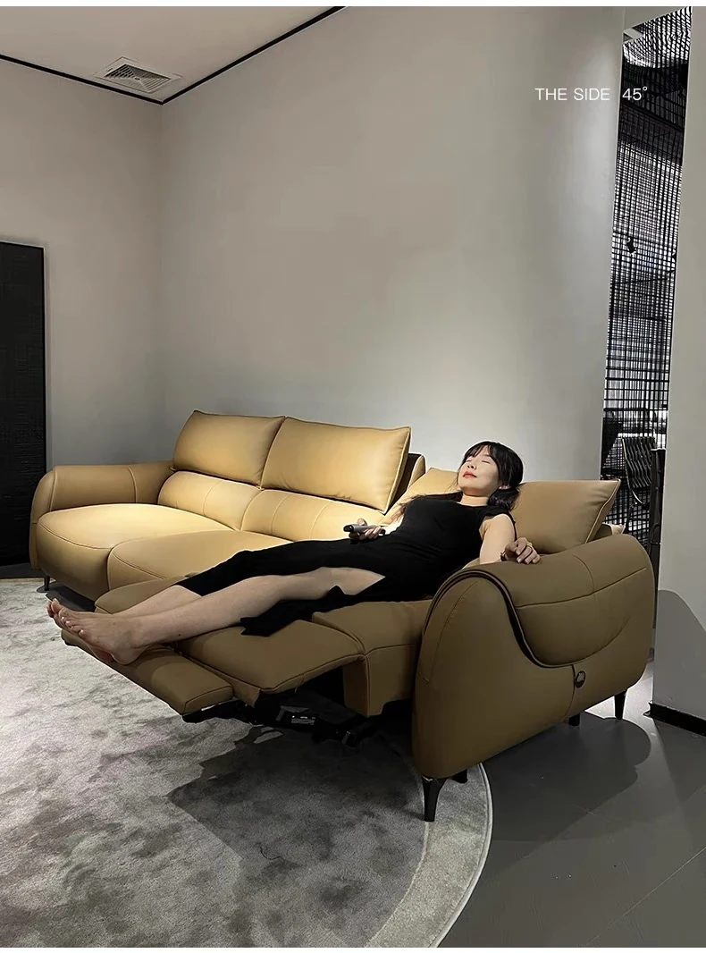 ファーストクラスの電動伸縮機能付き本革ソファー - 上質な牛革使用、イタリアンミニマリズムデザイン、3〜4人用、贅沢な羽毛クッションで極上の座り心地を実現!