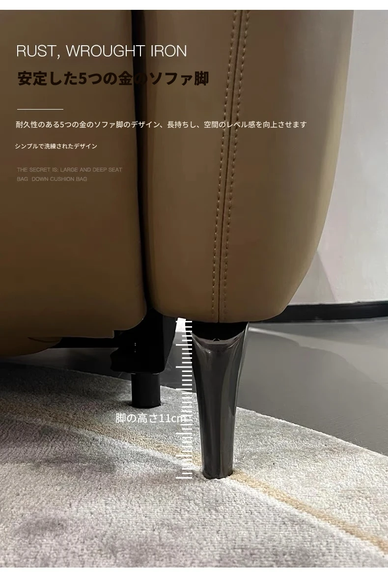 2.05メートルの二人掛けソファ 機能付き 輸入トップグレインレザー