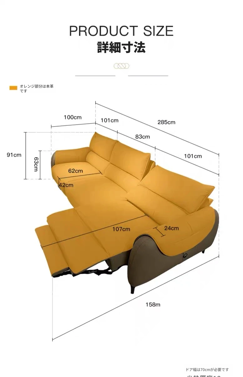 2.85メートルの大三人掛けソファ 機能付き 輸入トップグレインレザー
