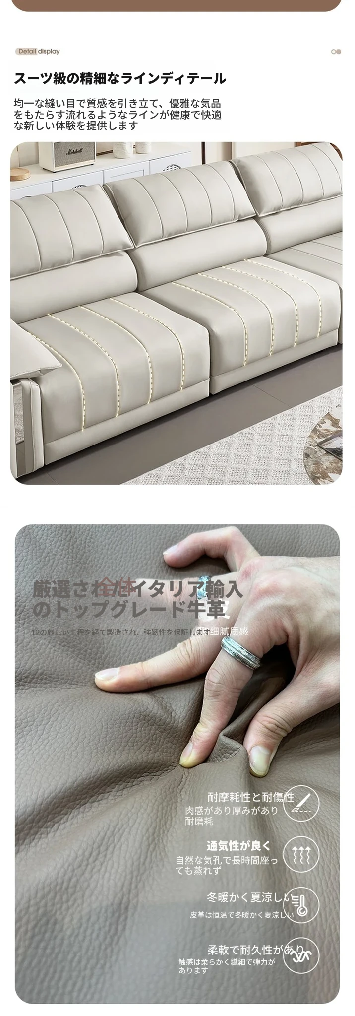 小4人用3.45M【アップグレード版-一級牛革+50D復元スポンジ】全電動