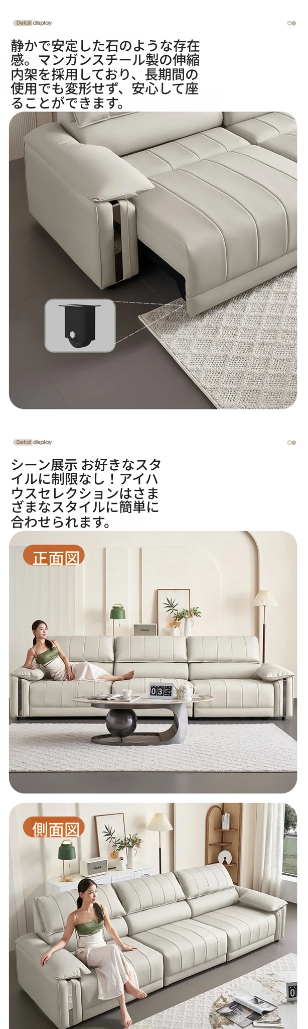 小3人用2.70M【スタンダード版-国産本革+45D復元スポンジ】全電動