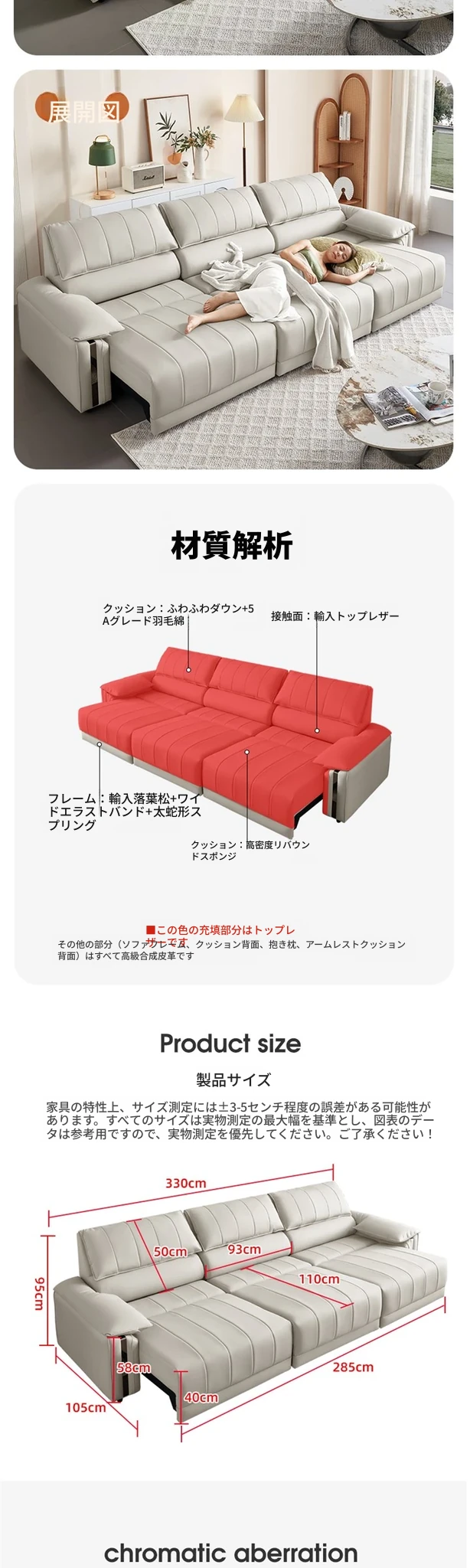 大4人用4.25M【アップグレード版-一級牛革+50D復元スポンジ】全電動