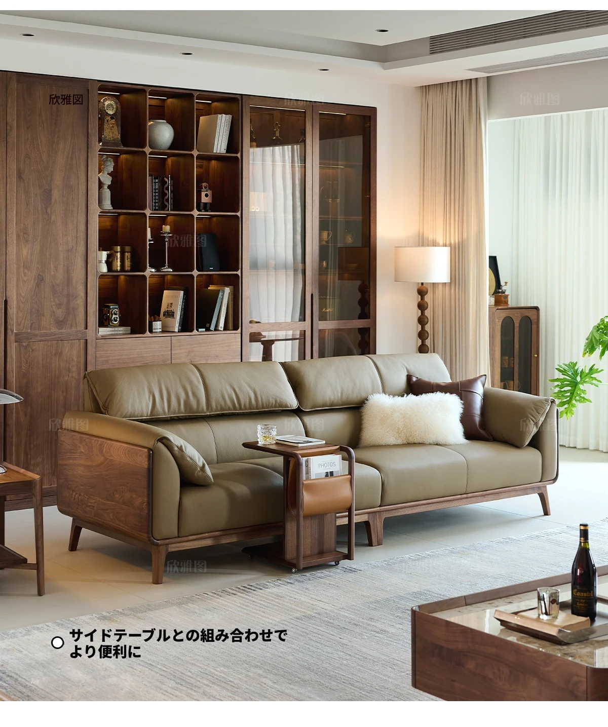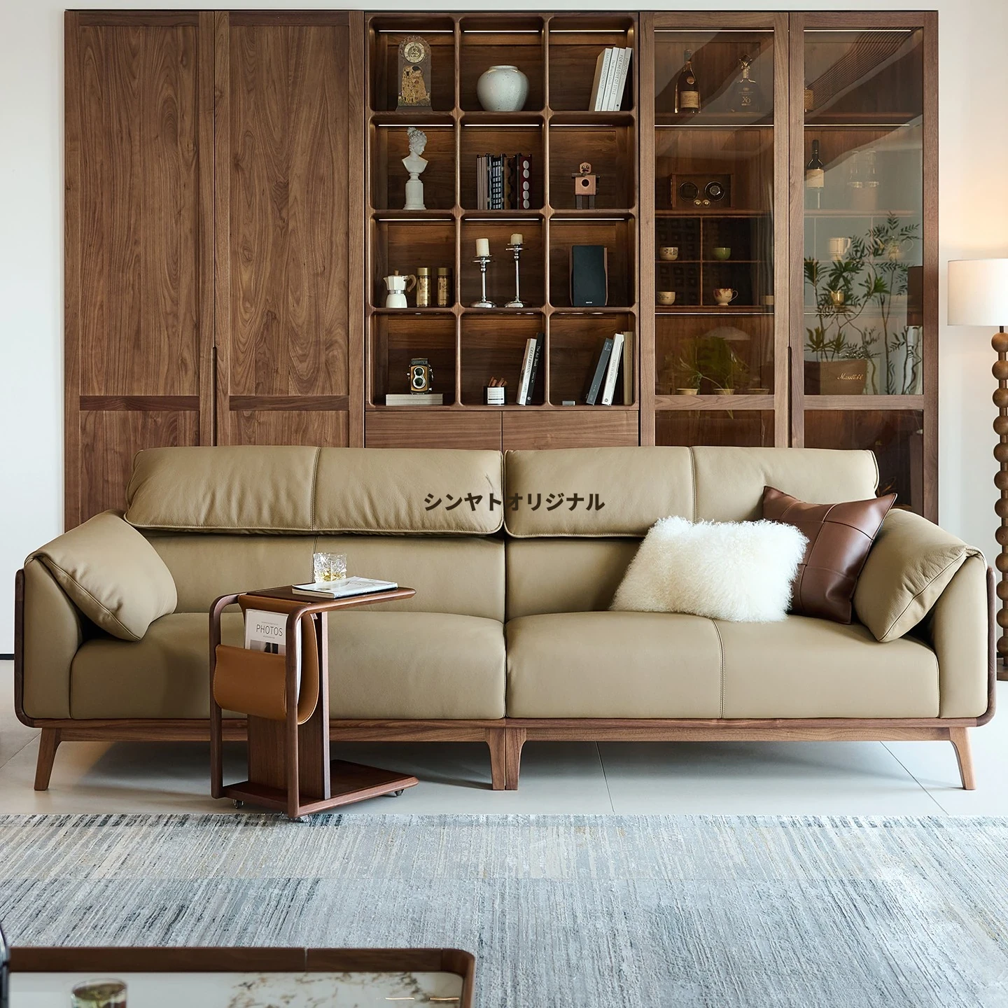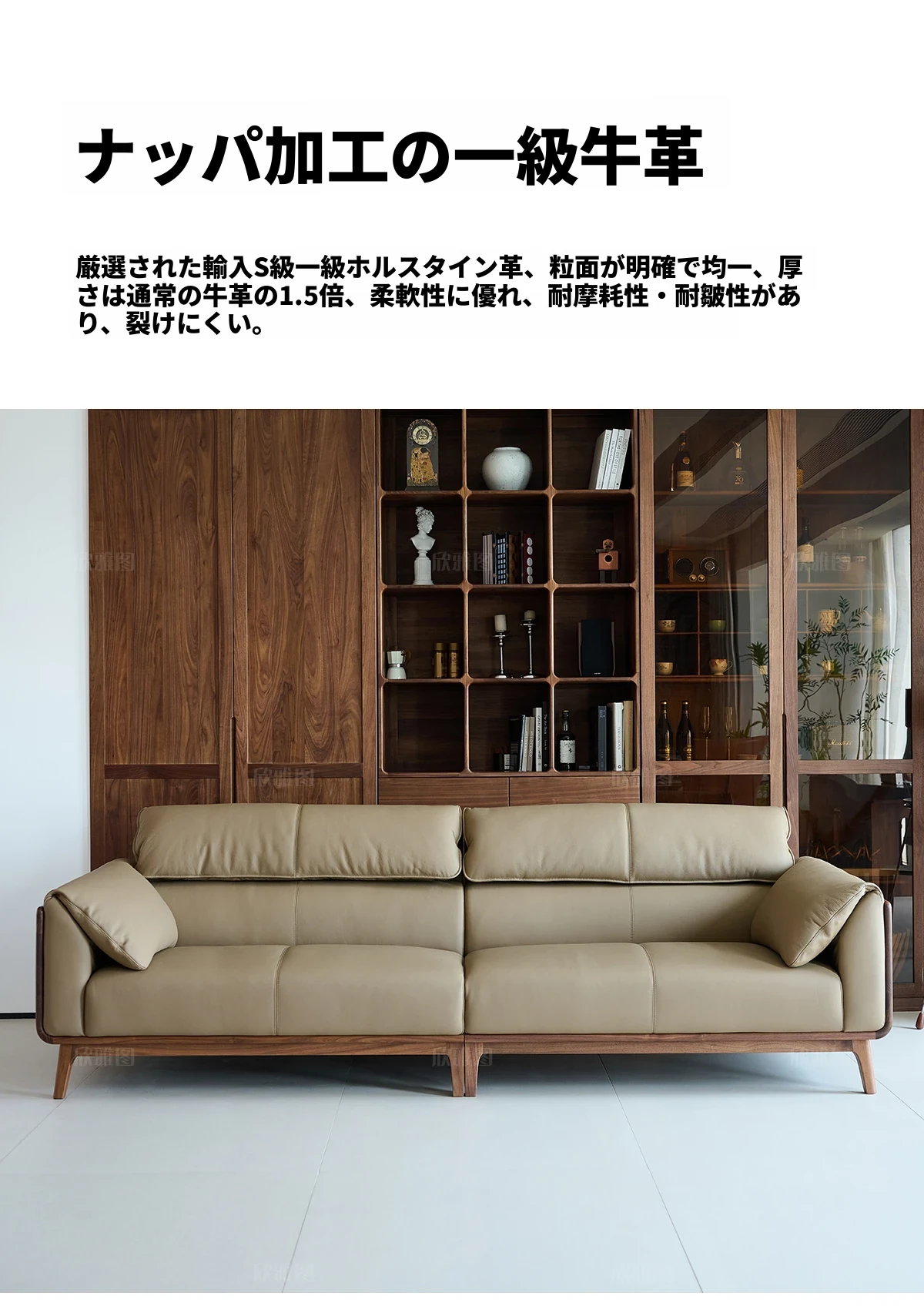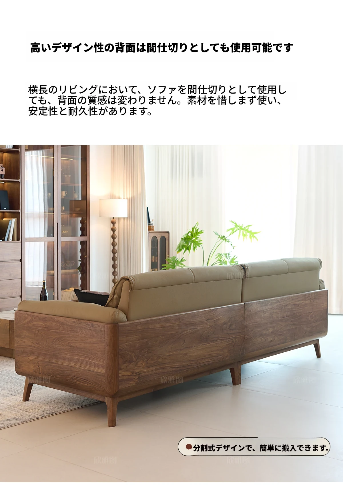 北米産ブラックウォールナット無垢材ソファー|ナチュラルな直線デザインでレトロ感漂う|小型リビングにぴったり|本革使用の4人掛けソファーで快適なひとときを!