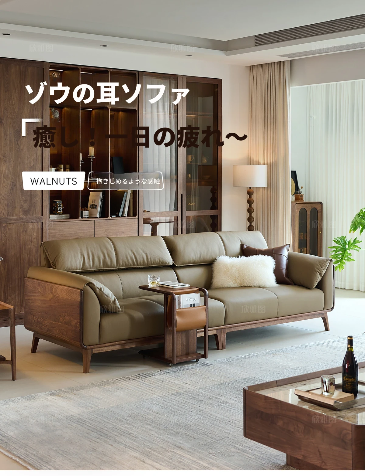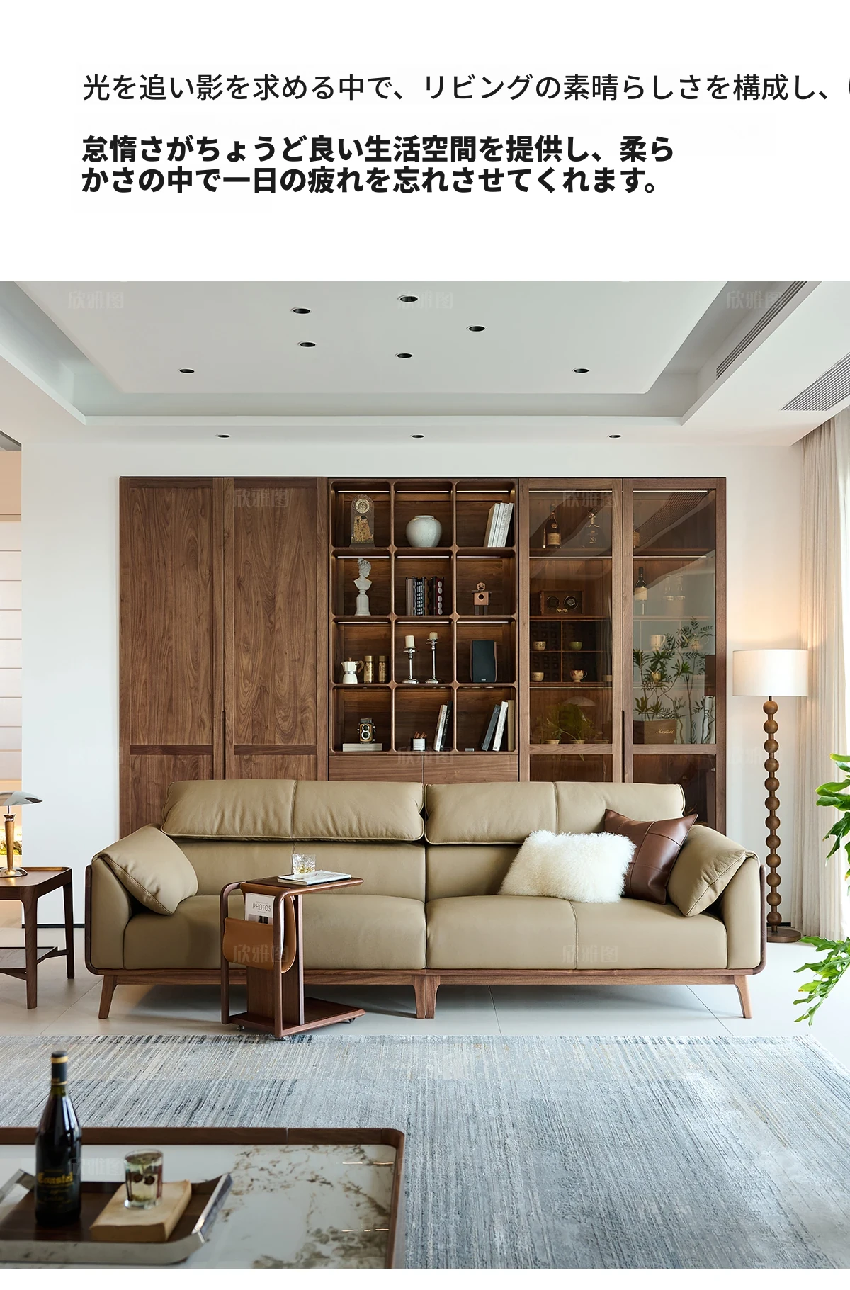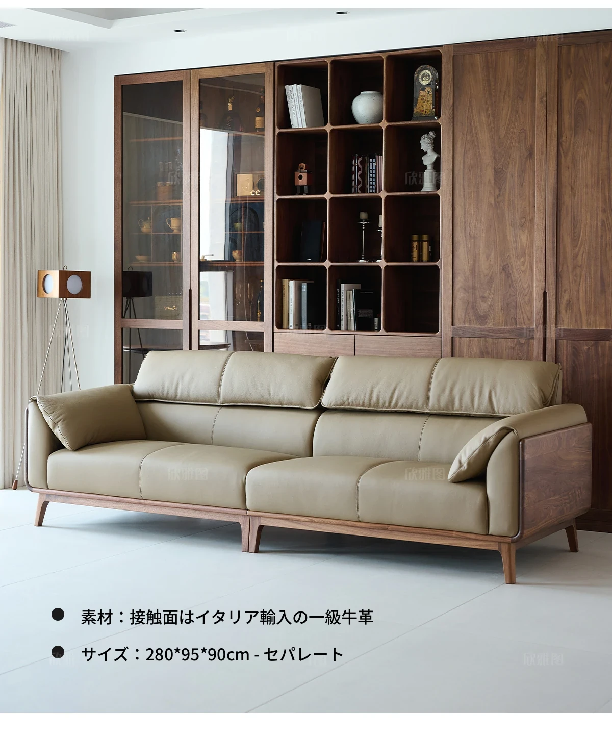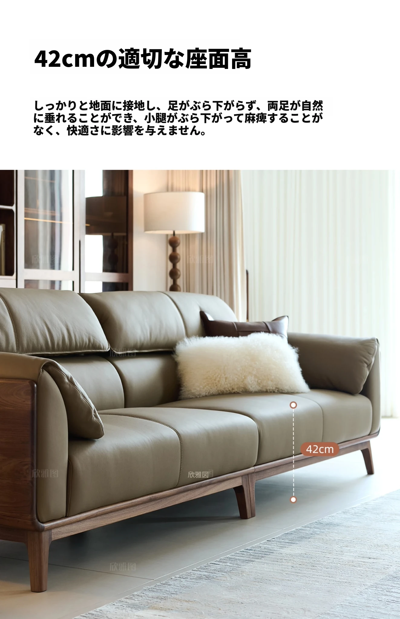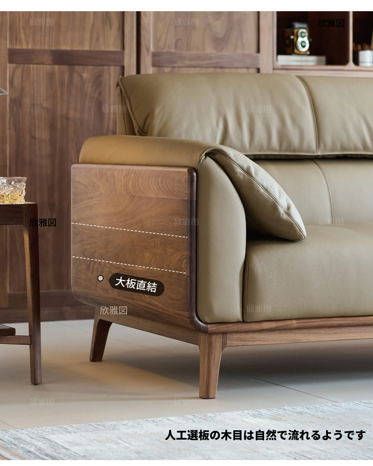 北米産ブラックウォールナット無垢材ソファー|ナチュラルな直線デザインでレトロ感漂う|小型リビングにぴったり|本革使用の4人掛けソファーで快適なひとときを!