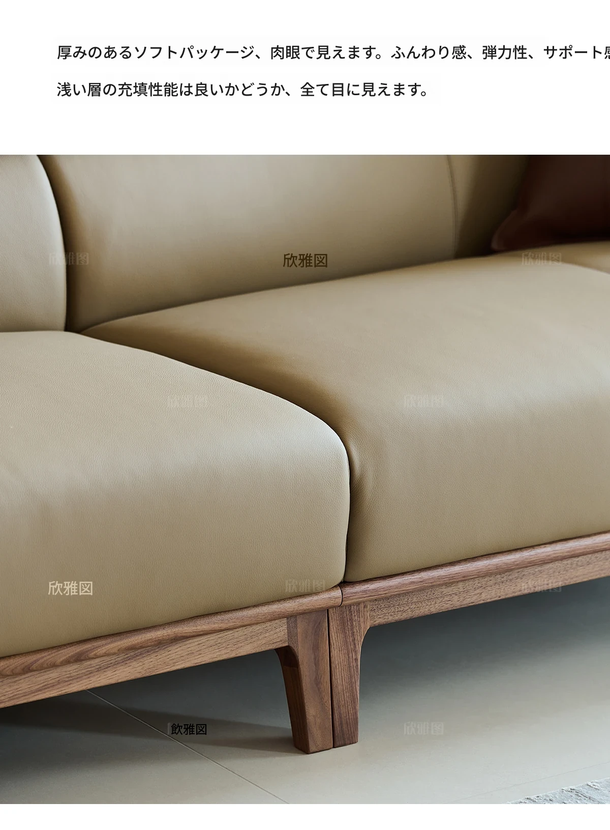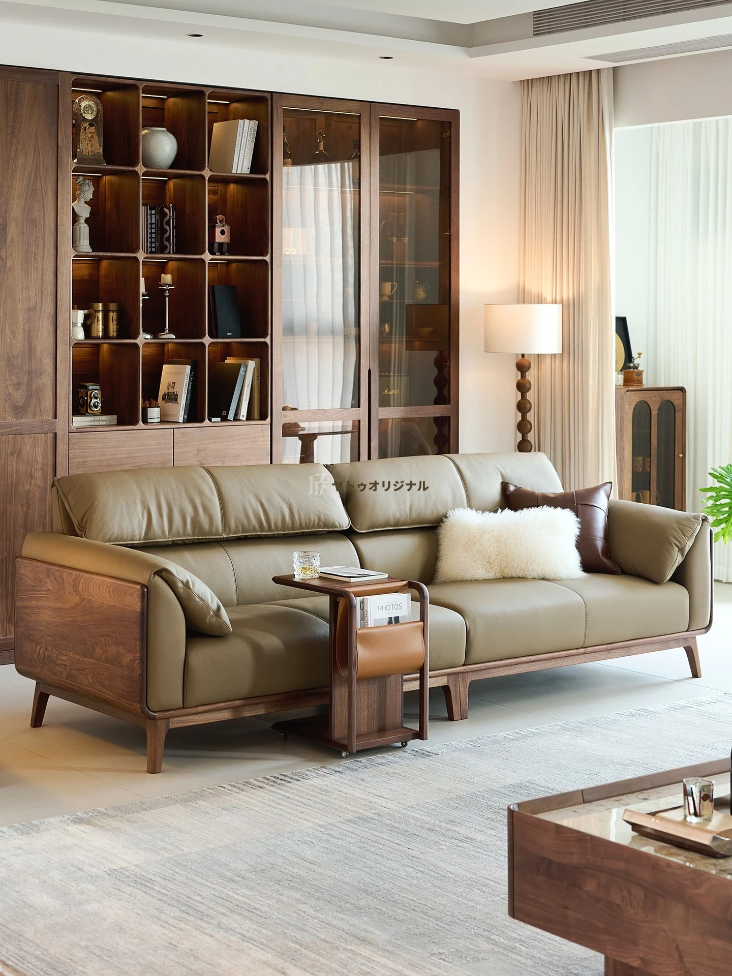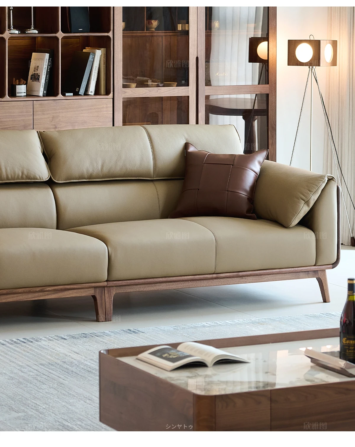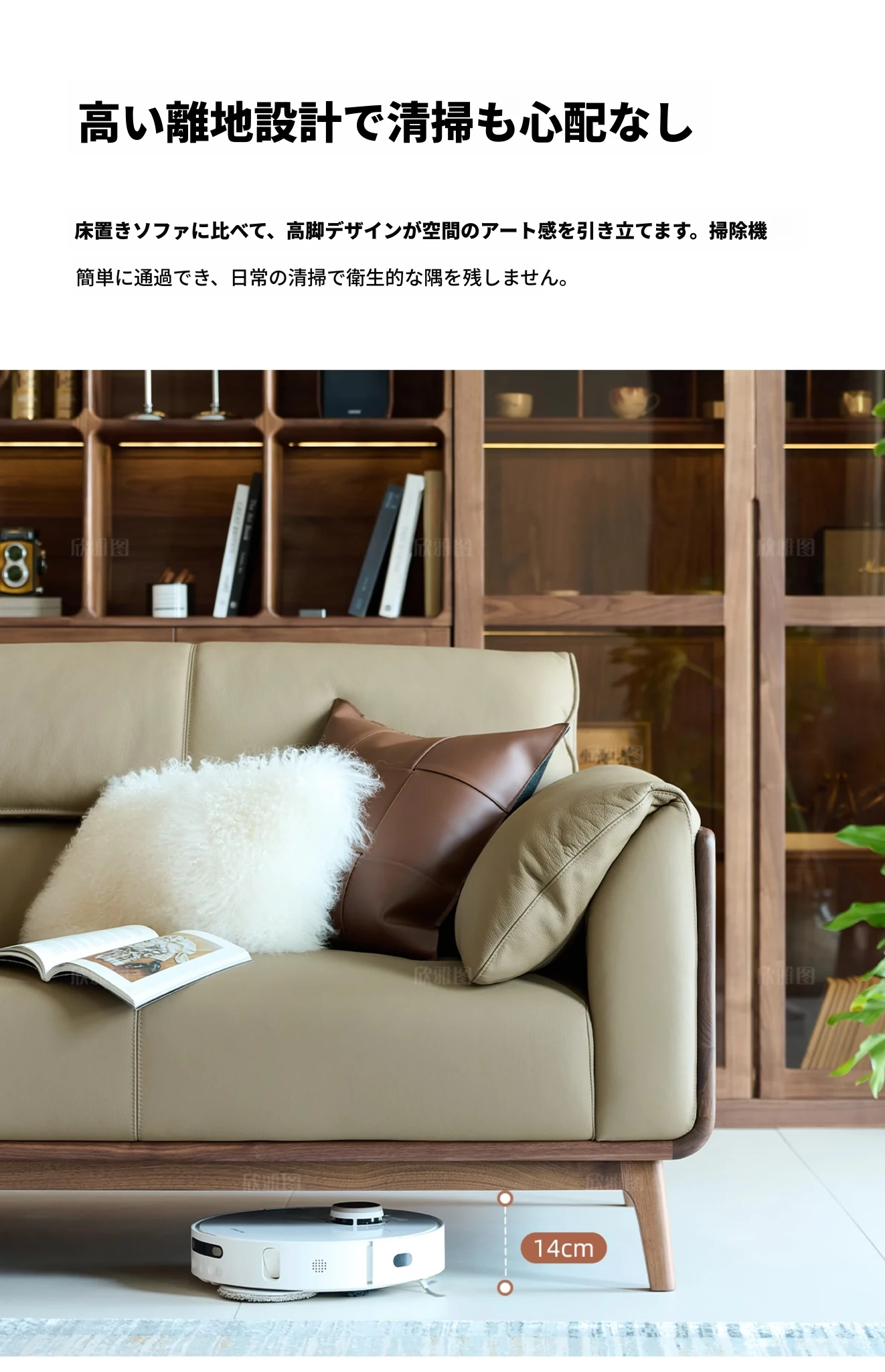 北米産ブラックウォールナット無垢材ソファー|ナチュラルな直線デザインでレトロ感漂う|小型リビングにぴったり|本革使用の4人掛けソファーで快適なひとときを!