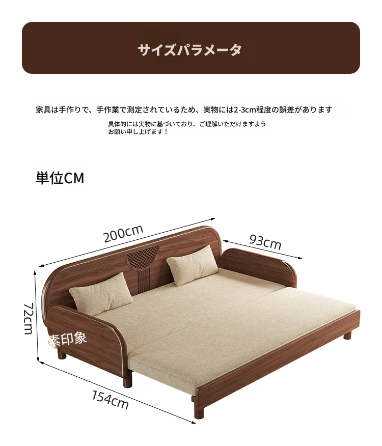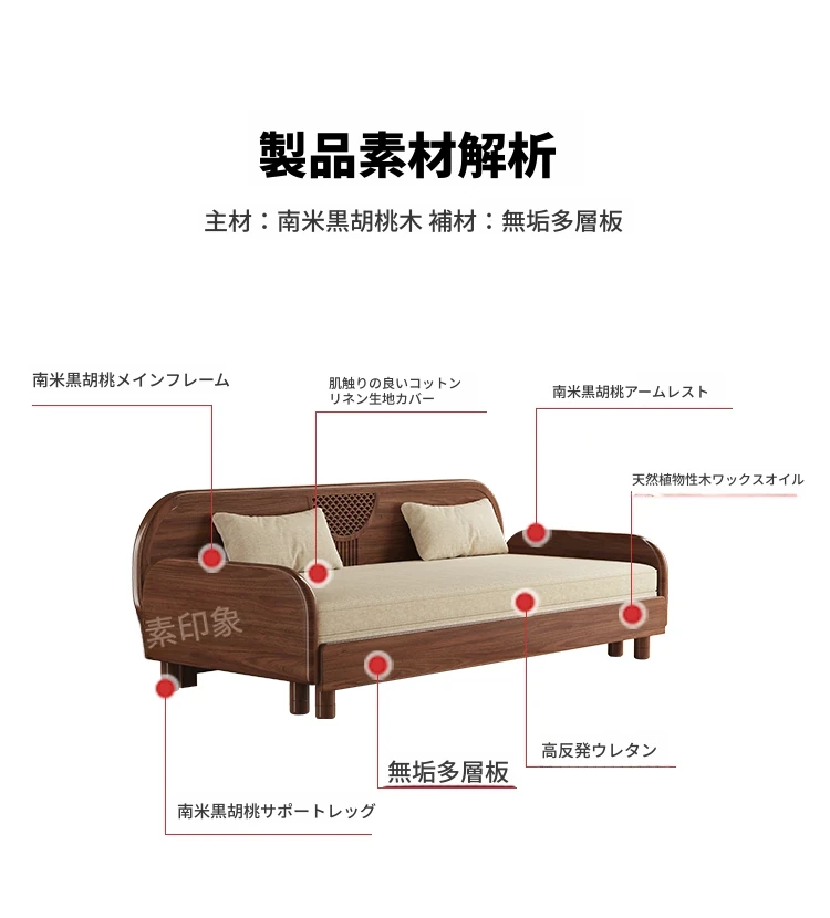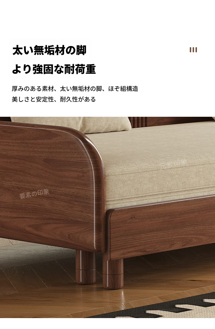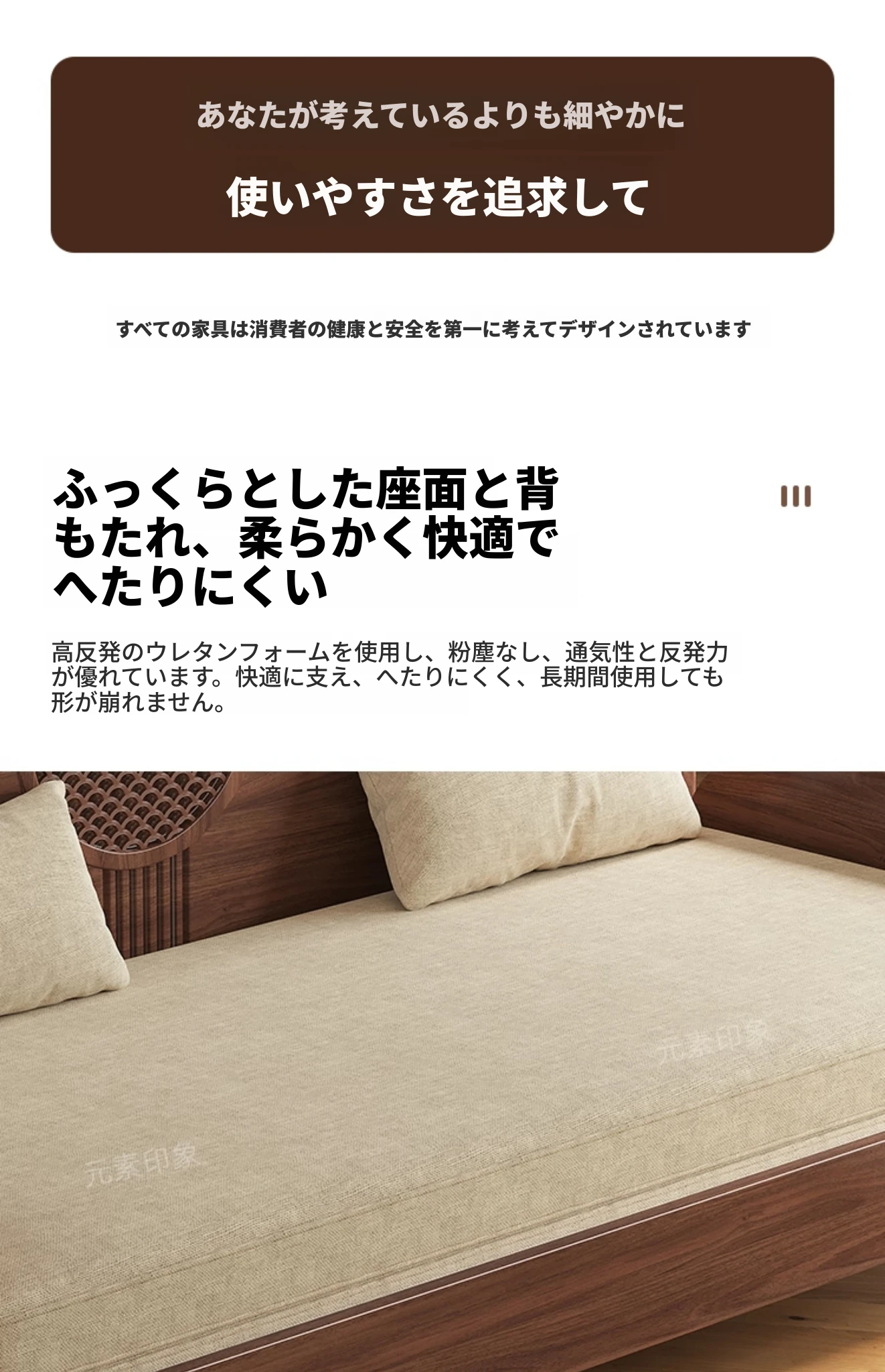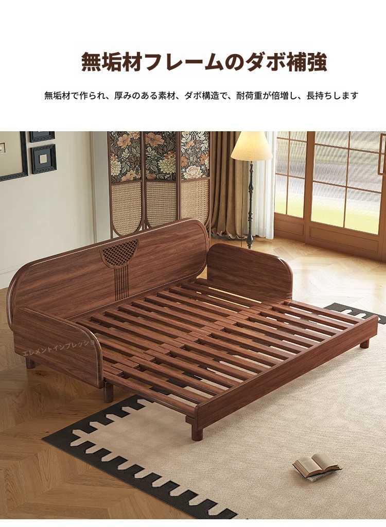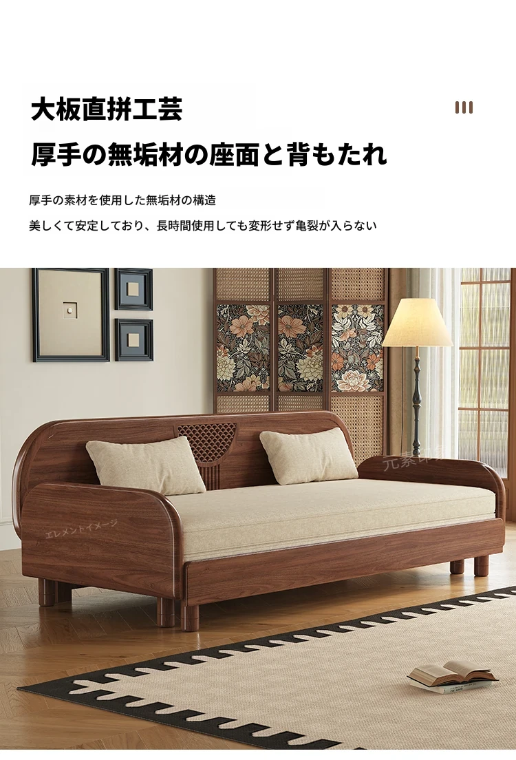 新中式デザインのブラックウォールナット無垢材ソファベッド - スペースを有効活用できる小型リビング向けの伸縮式多機能ソファとベッドの2wayタイプ!快適な座り心地と寝心地を両立したおしゃれなアイテムです。