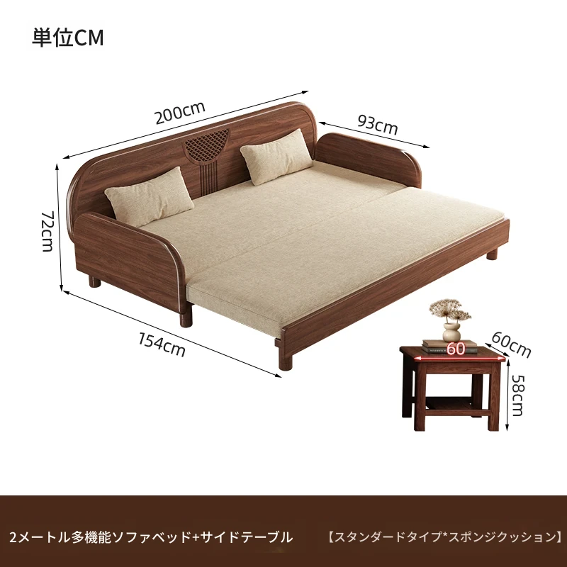 2メートル多機能ソファベッド+サイドテーブル【標準タイプ*スポンジクッション】