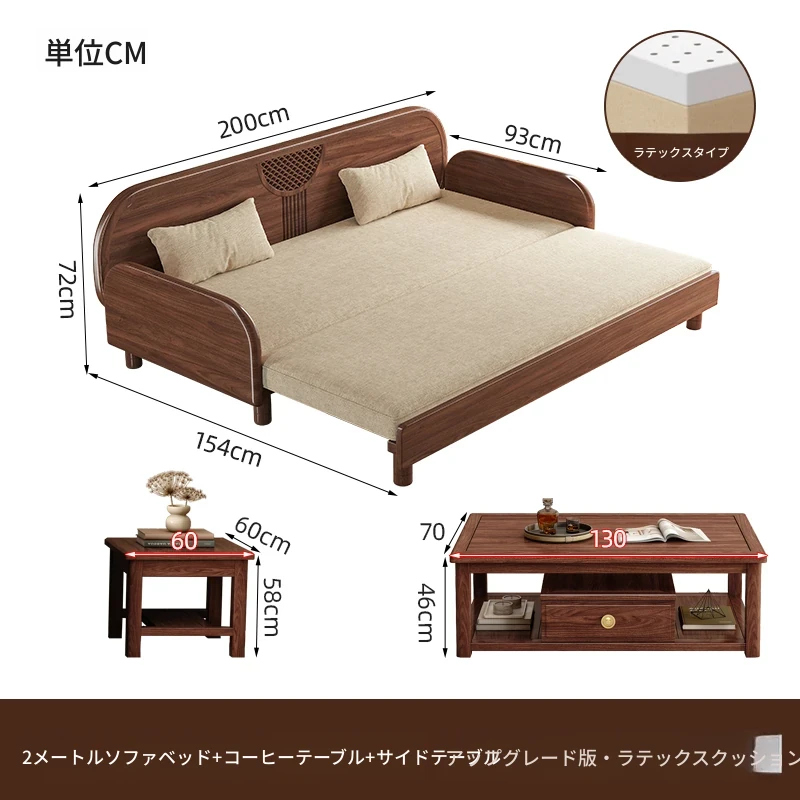 2メートル多機能ソファベッド+コーヒーテーブル+サイドテーブル【アップグレードタイプ*ラテックスクッション】