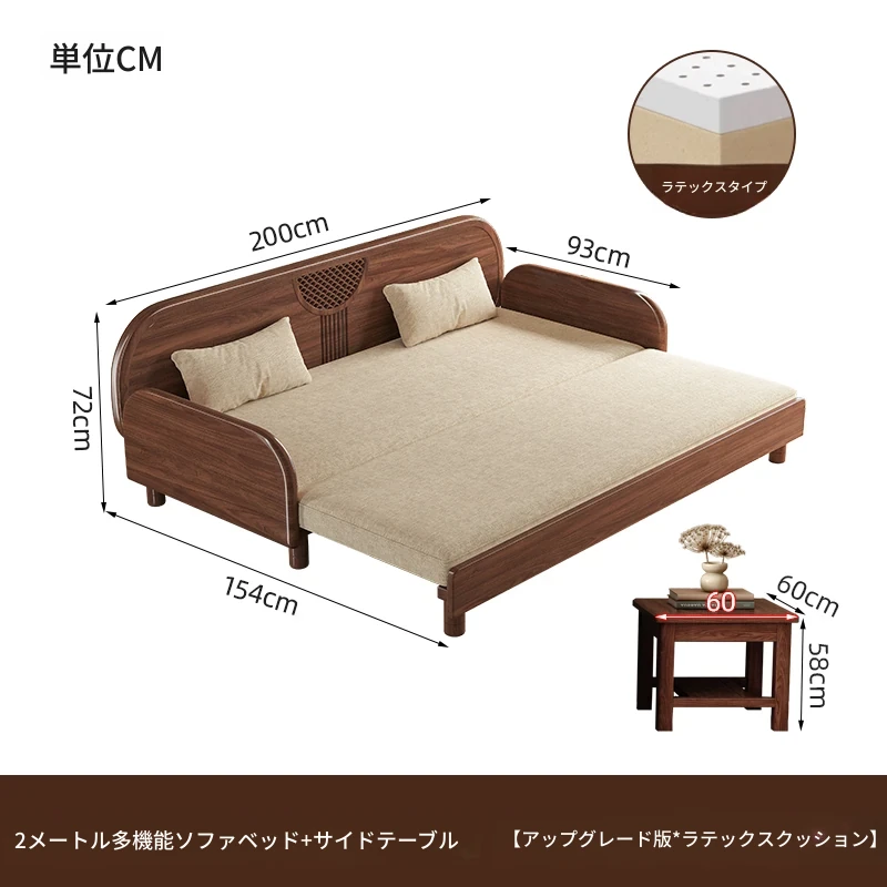 2メートル多機能ソファベッド+サイドテーブル【アップグレードタイプ*ラテックスクッション】