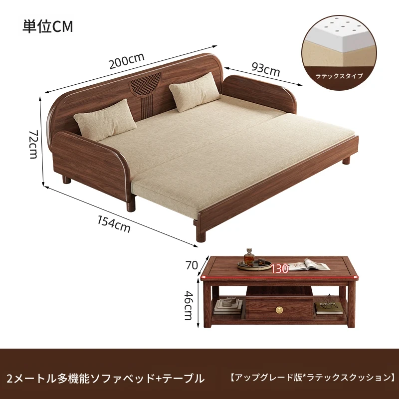2メートル多機能ソファベッド+コーヒーテーブル【アップグレードタイプ*ラテックスクッション】