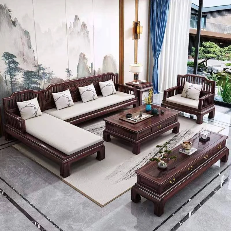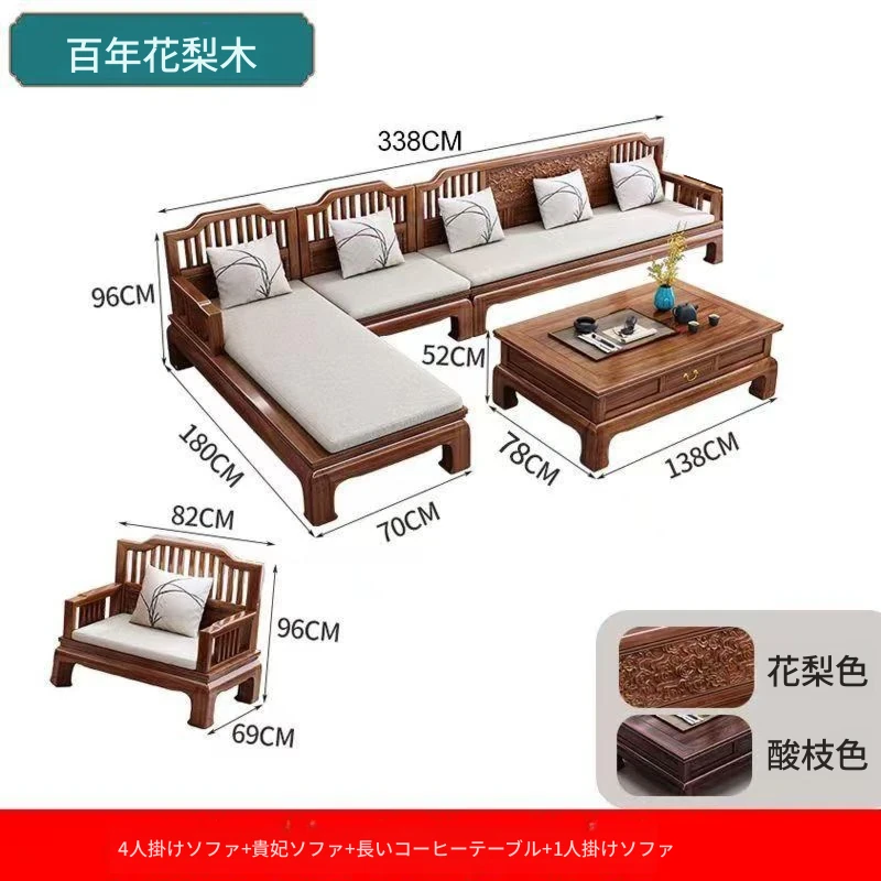 H1F2X 新中式花梨木実木ソファセット - 現代的なシンプルデザイン、冬・夏両用、アンティーク風彫刻のコーナーソファで、贅沢なひとときを。