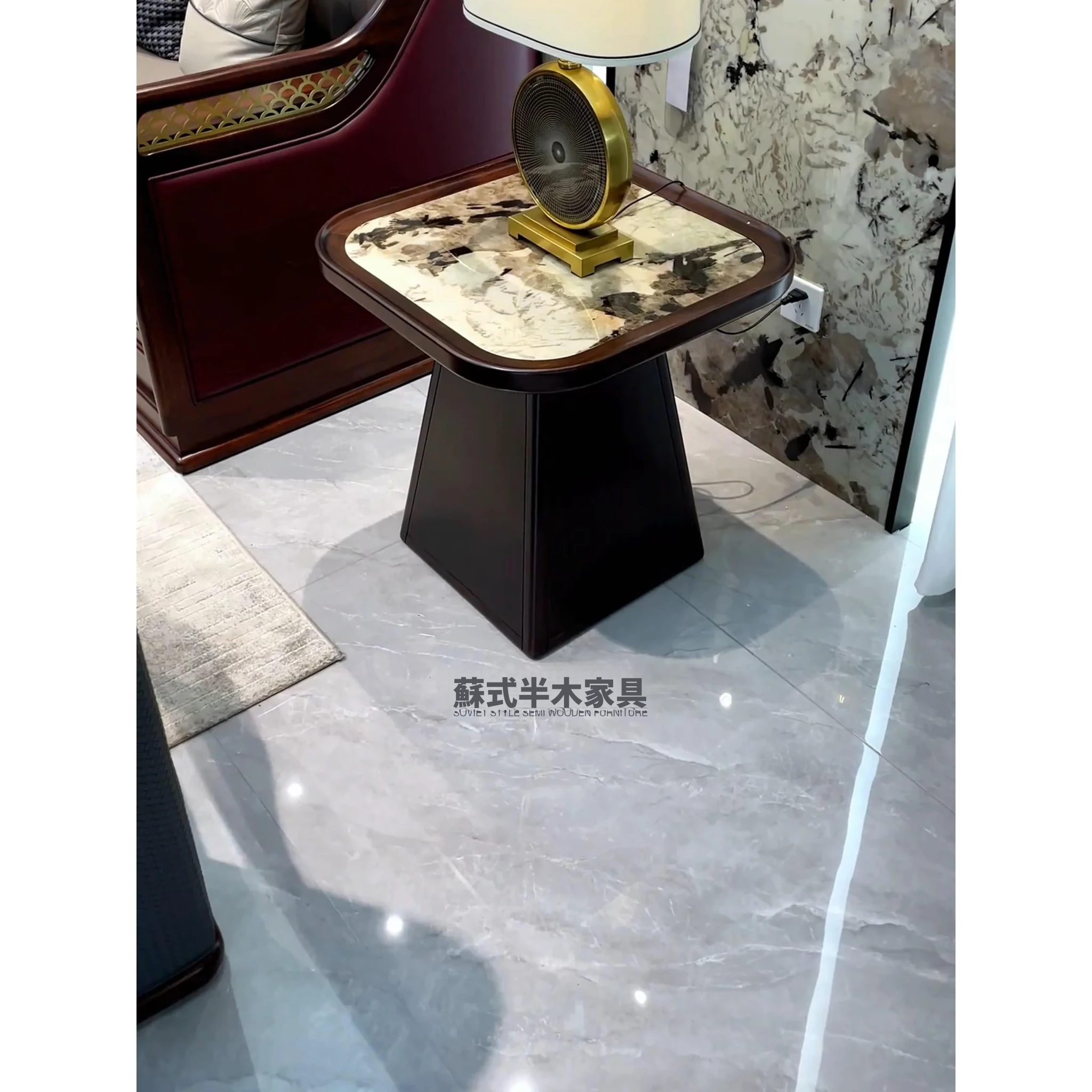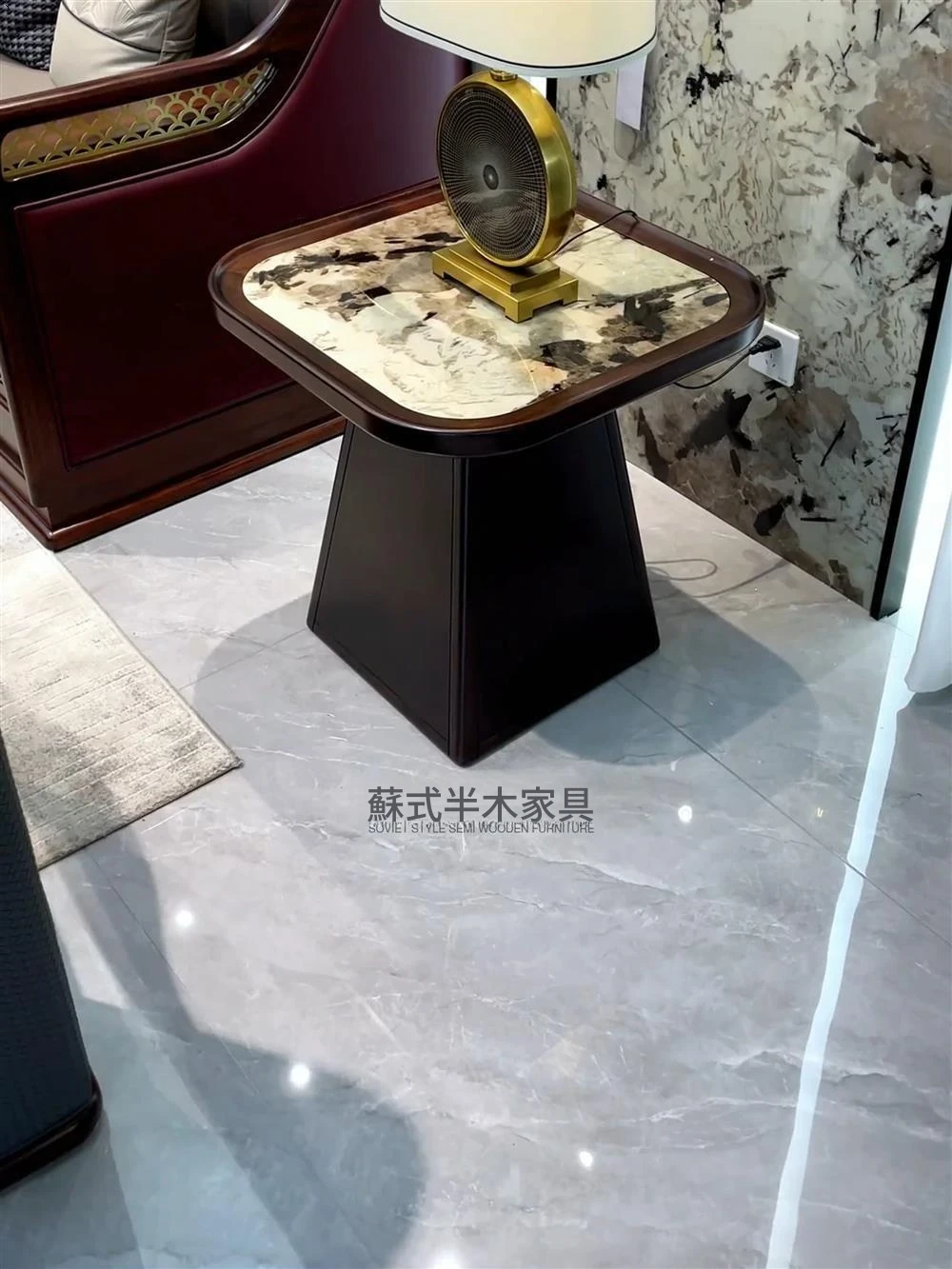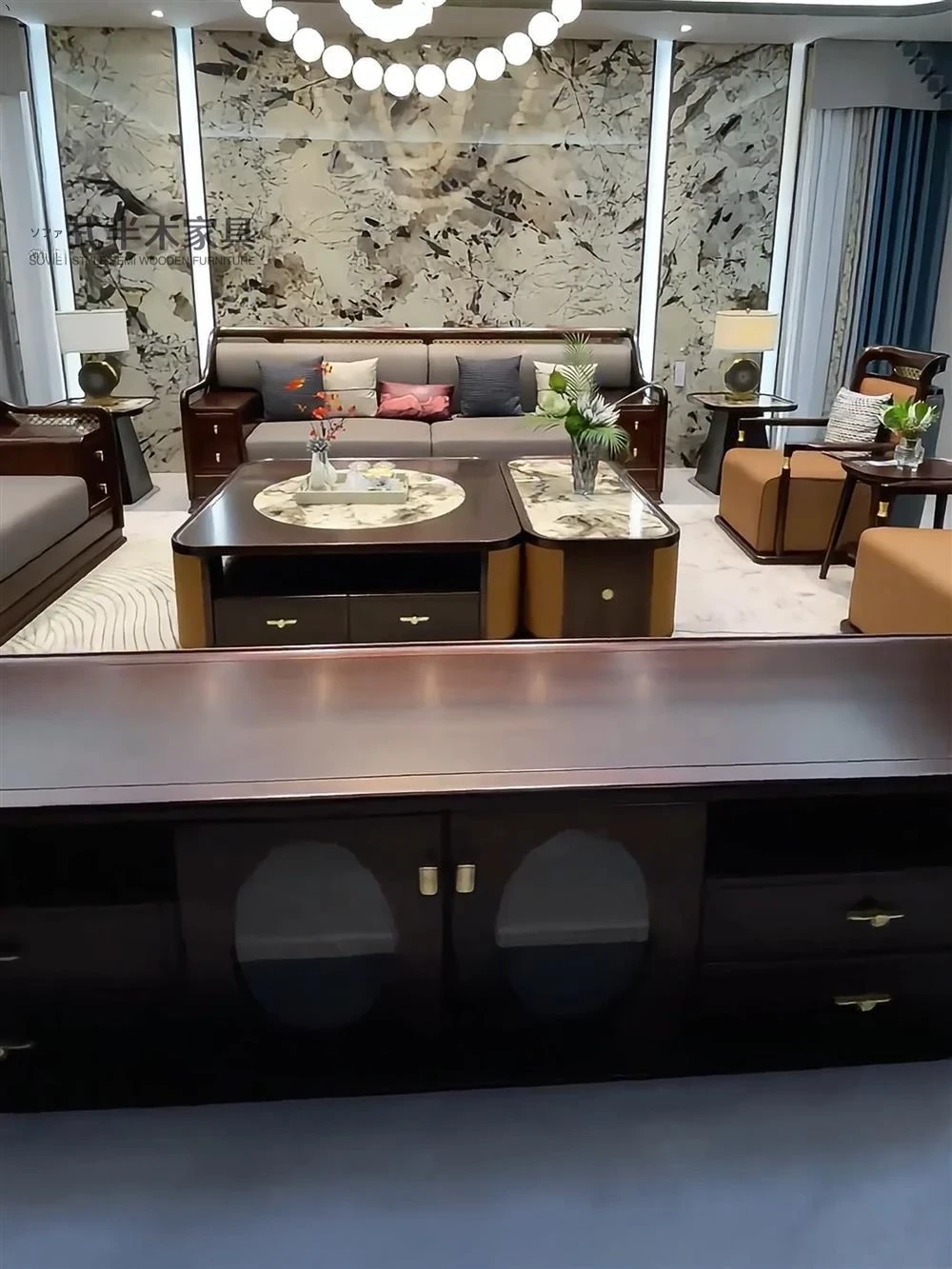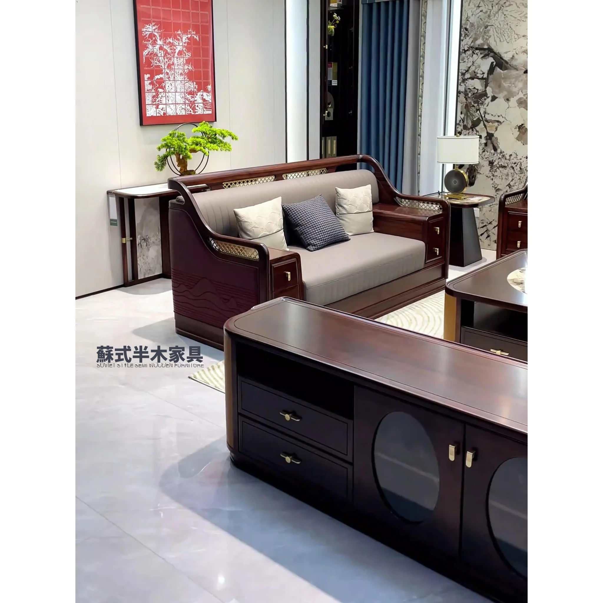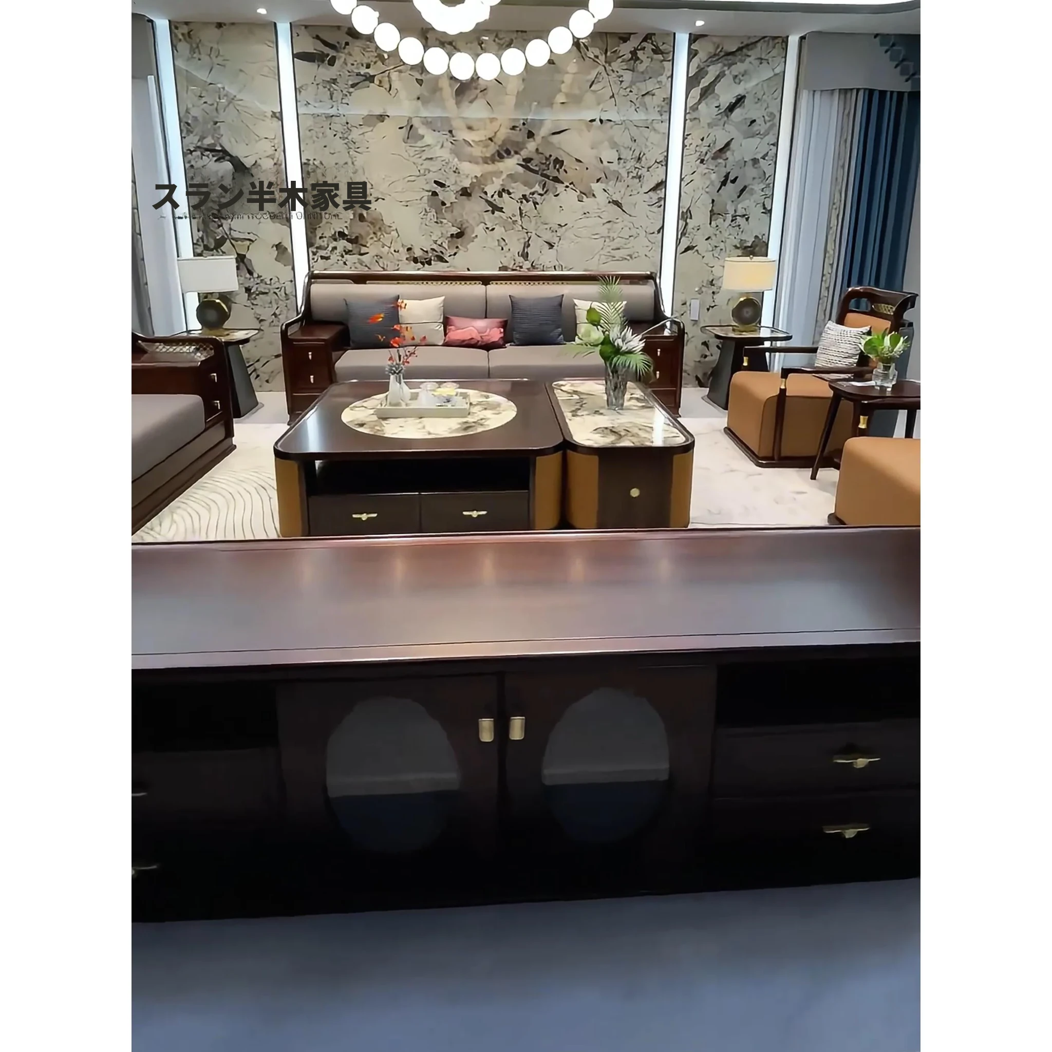 新中式ウッドウエア、真皮軽奢モダンソファー。別荘や大小の住宅にぴったり!肘掛け付き収納ボックスで、実用性と禅の美を兼ね備えた高級家具。あなたの空間を特別に演出します!