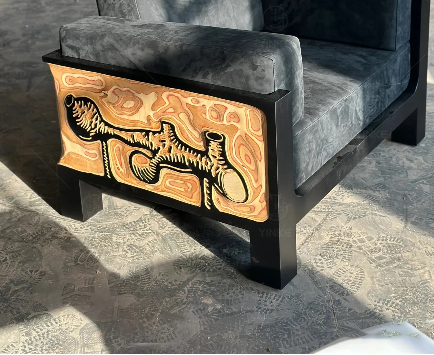 モダンミニマリストデザインのクリエイティブな無垢材バルコニー用一人掛けソファチェア。レトロな風格で、カフェや接待にも最適なリラックスチェアです。