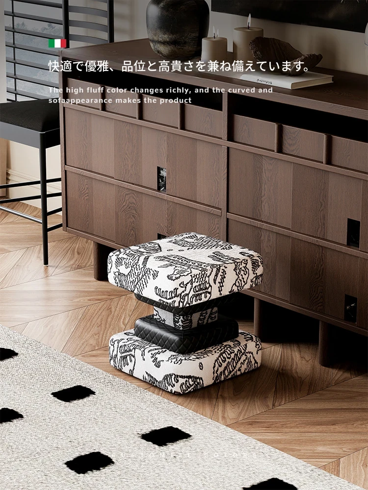 モダンミニマリストの小型家庭用フリーススツール、個性的な無垢材の化粧台用スクエアスツール。民宿やカフェにぴったりのティーテーブル、靴を履き替えるのにも最適です!