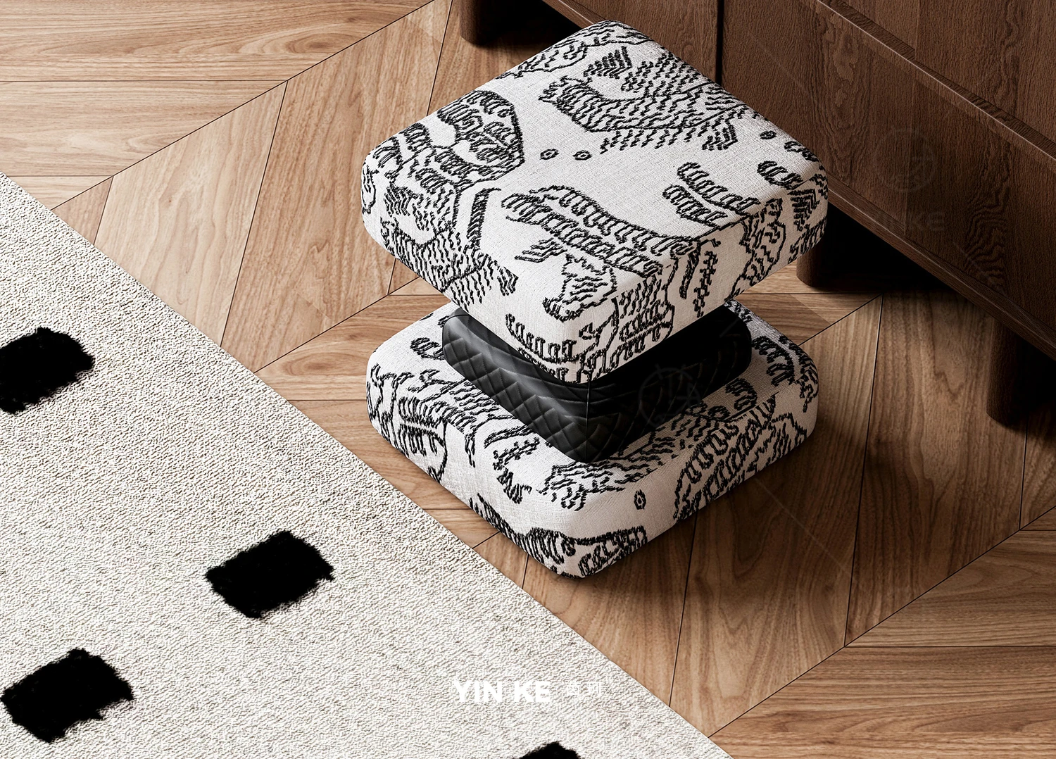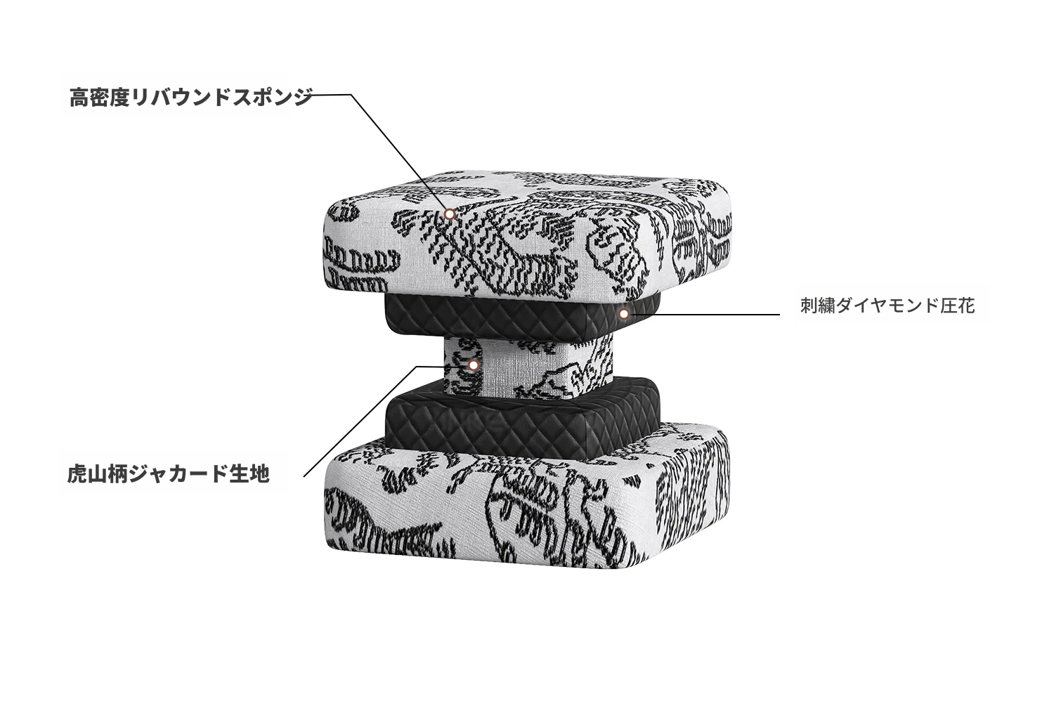 FUFUスツール虎山模様白