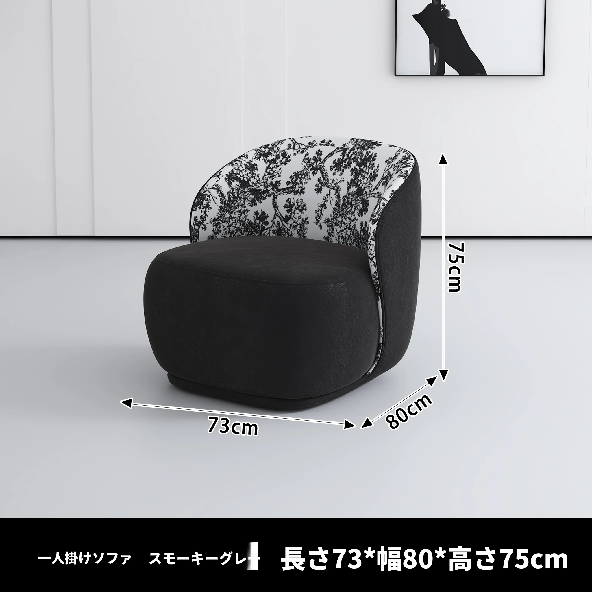 一人掛け【ブラックベルベット+水墨の森の花模様】