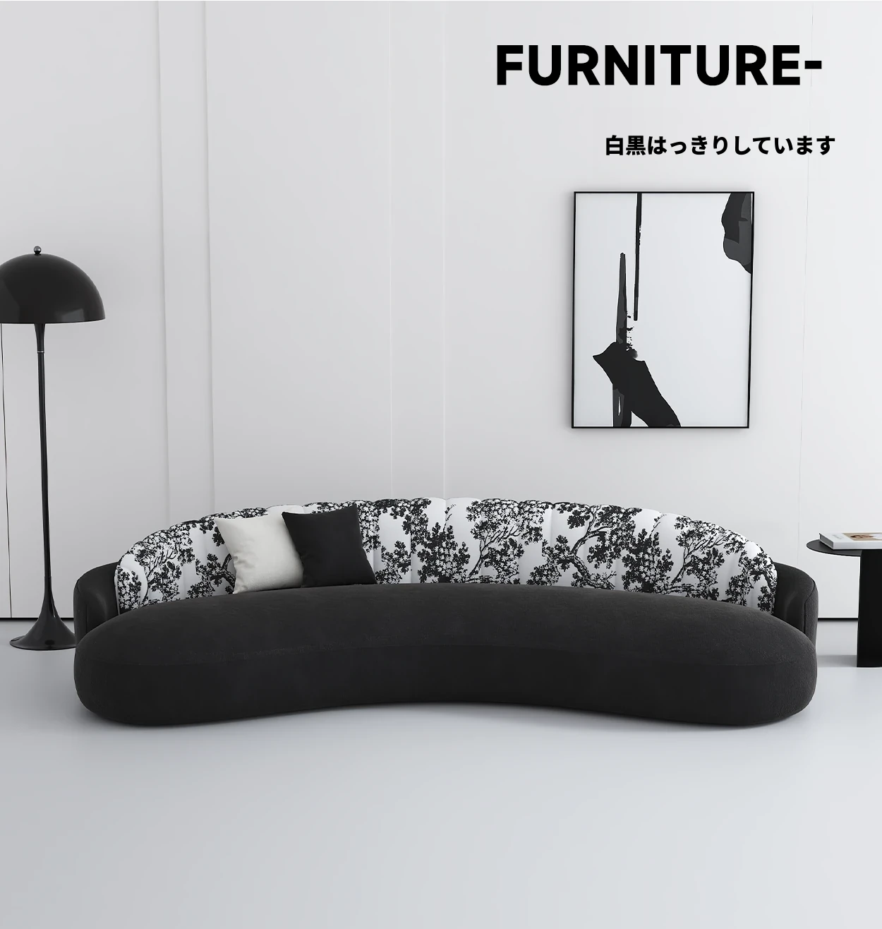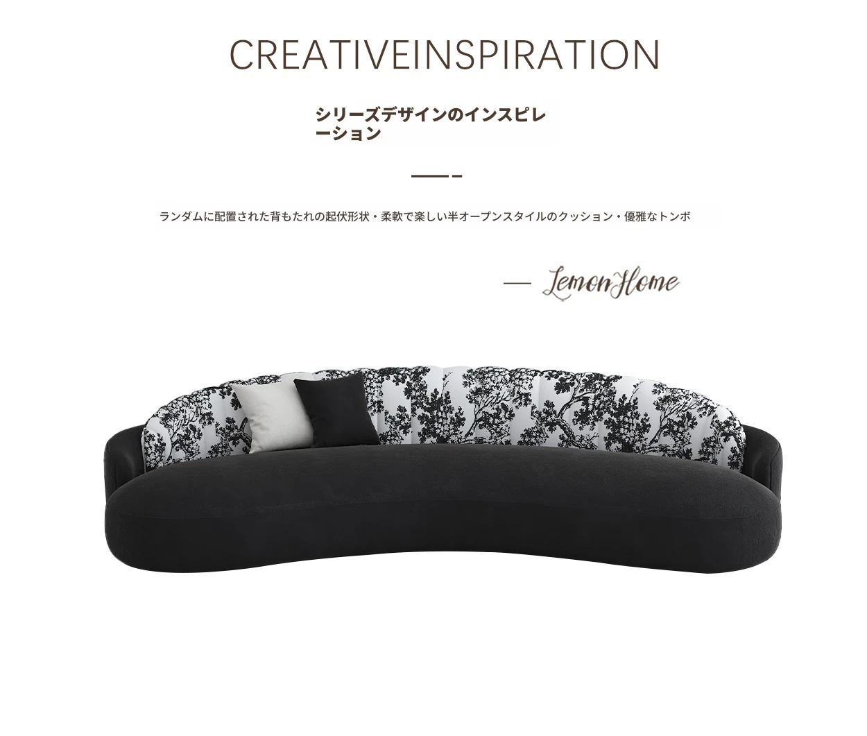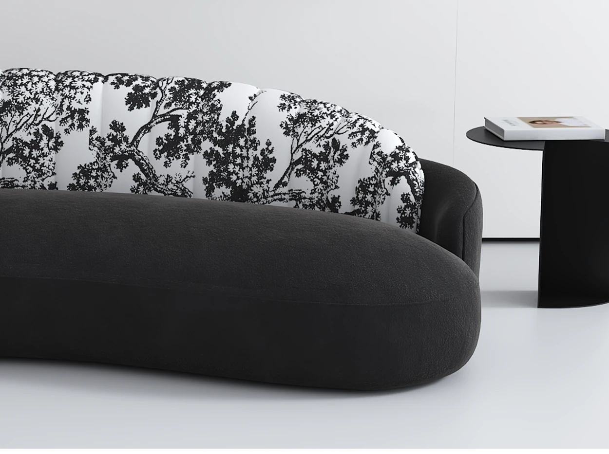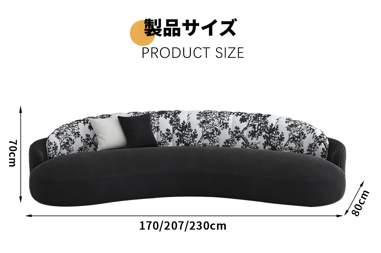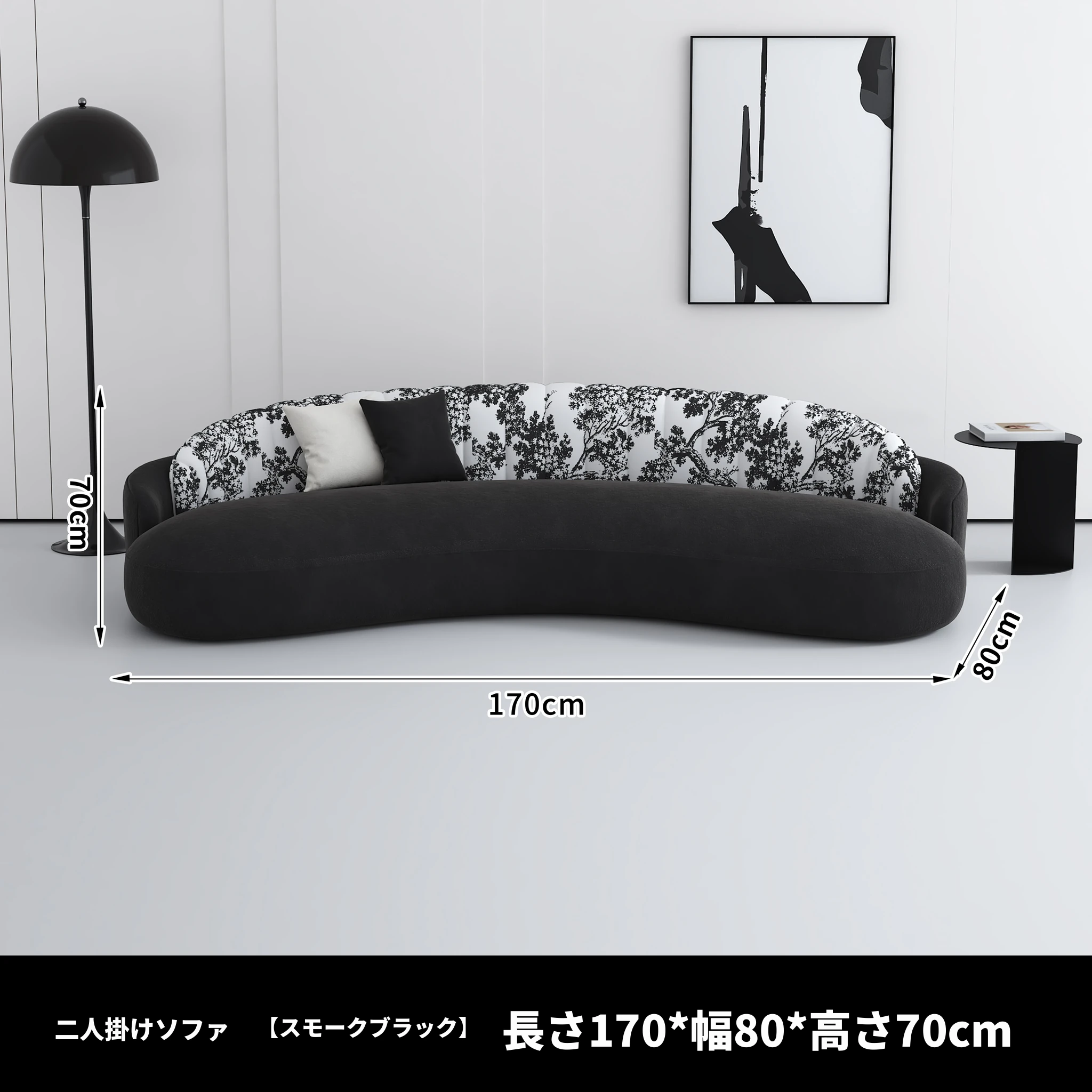 二人掛け170cm【ブラックベルベット+水墨の森の花模様】