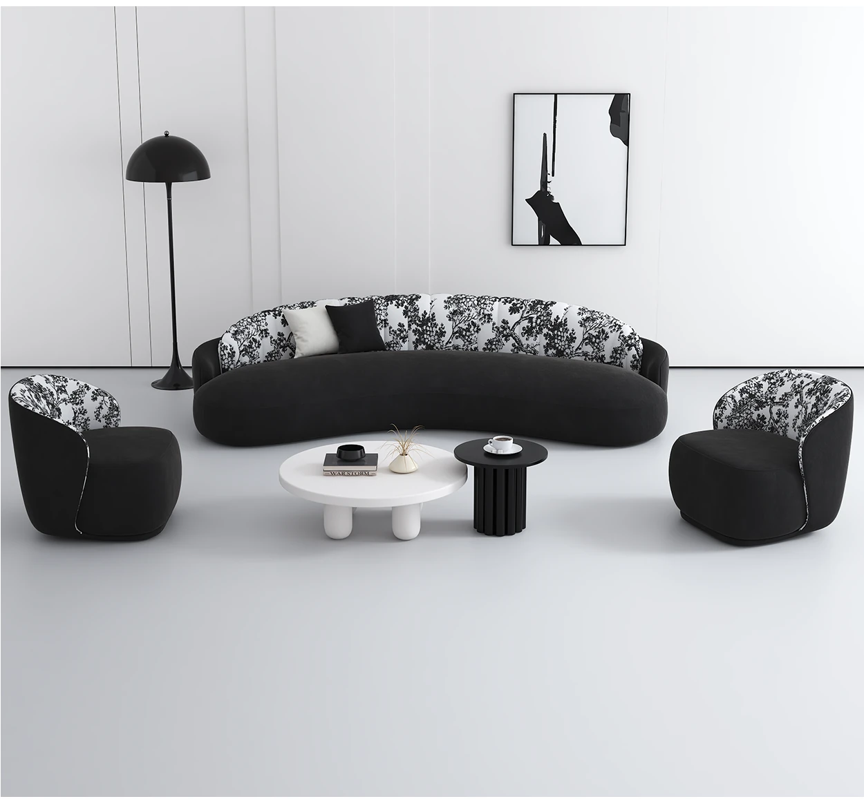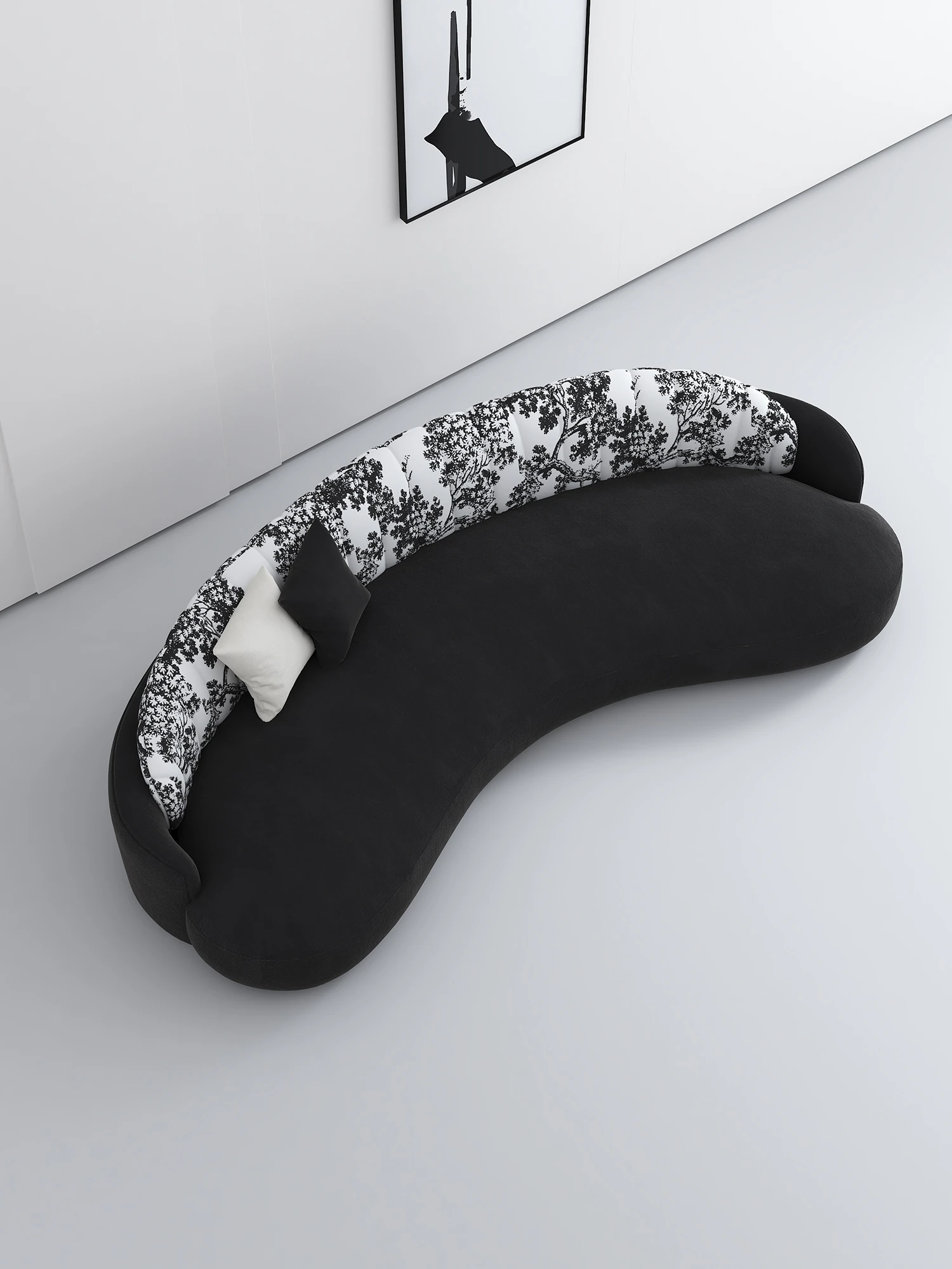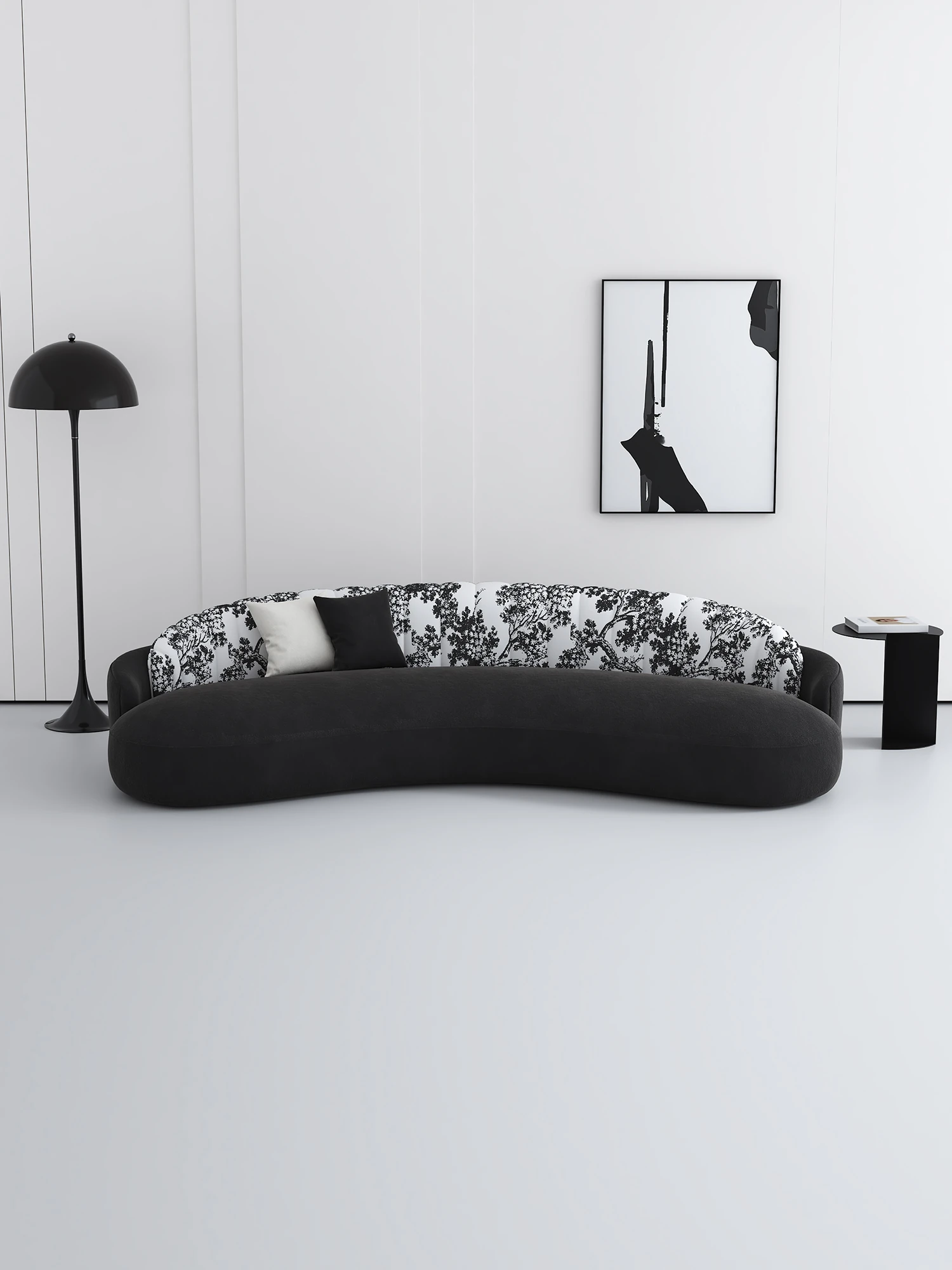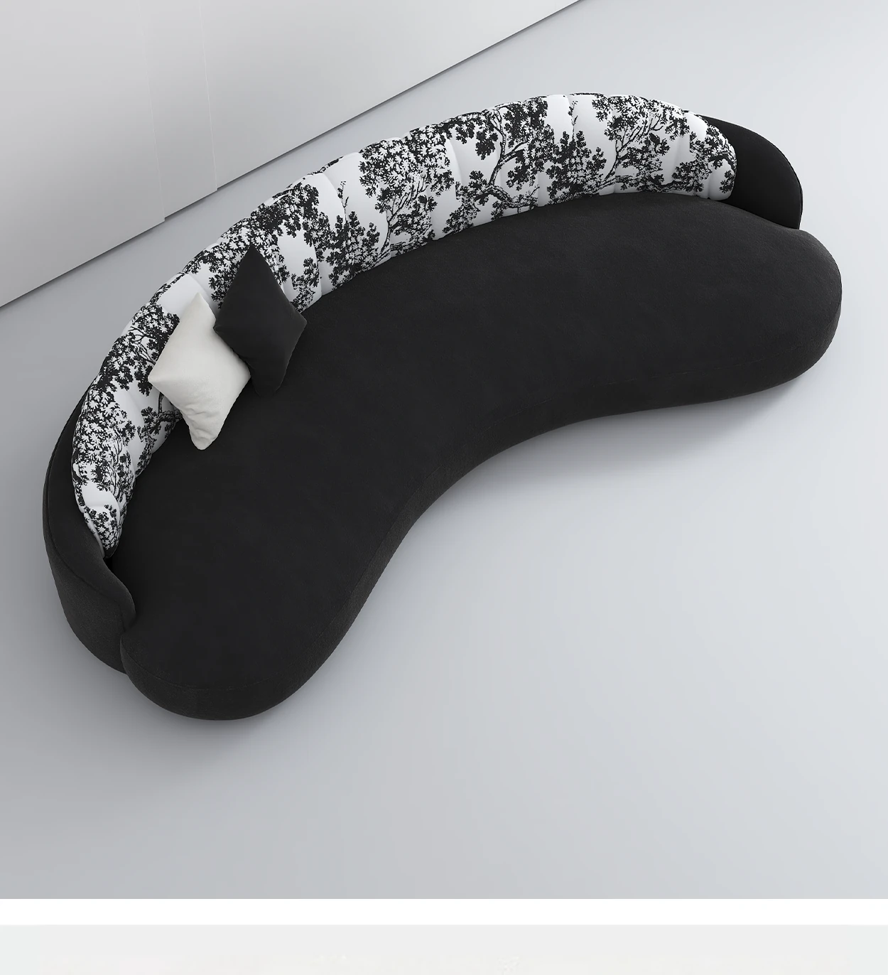 二人掛け170cm【ブラックベルベット+水墨の森の花模様】
