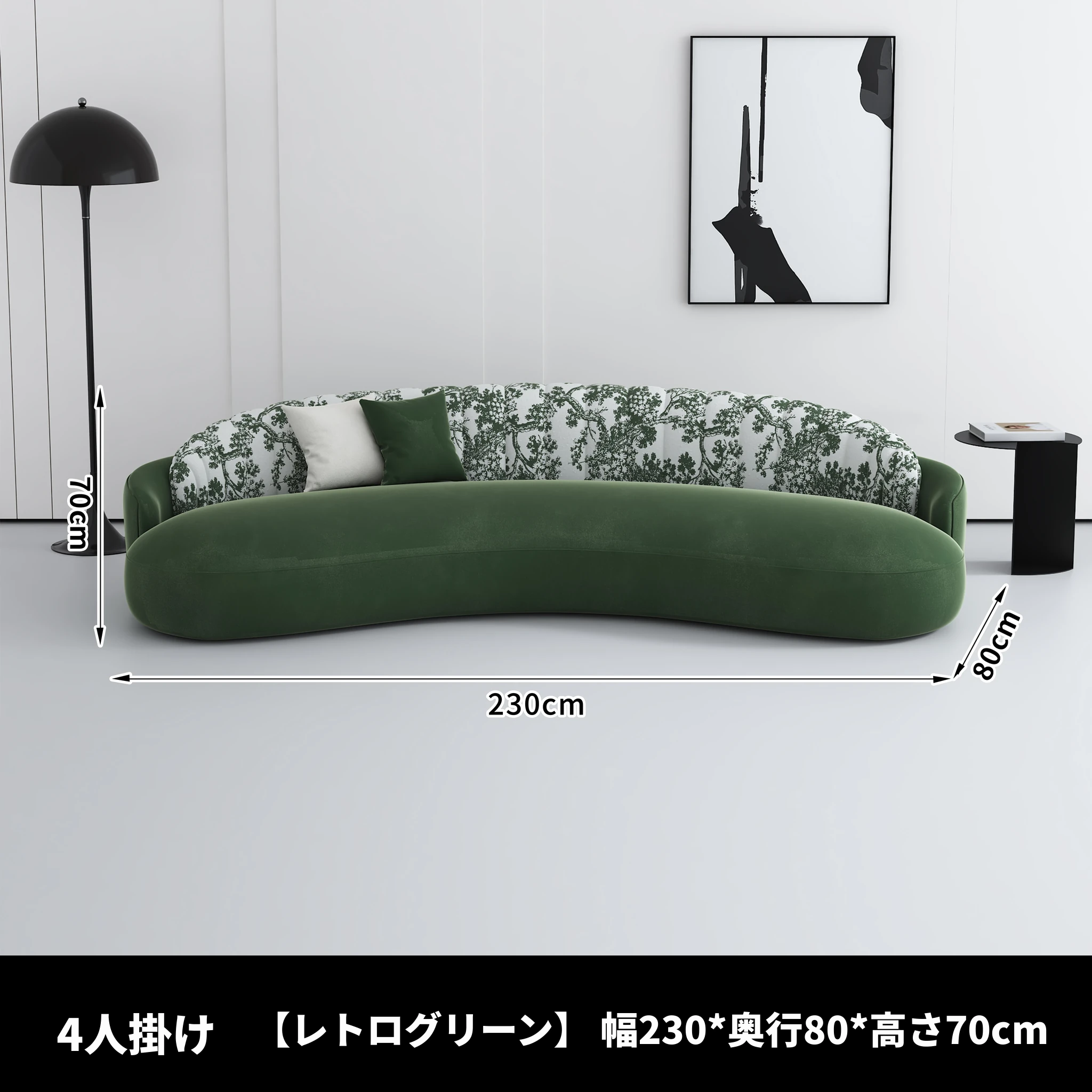 四人掛け230cm【グリーンベルベット+グリーンウメの花模様】