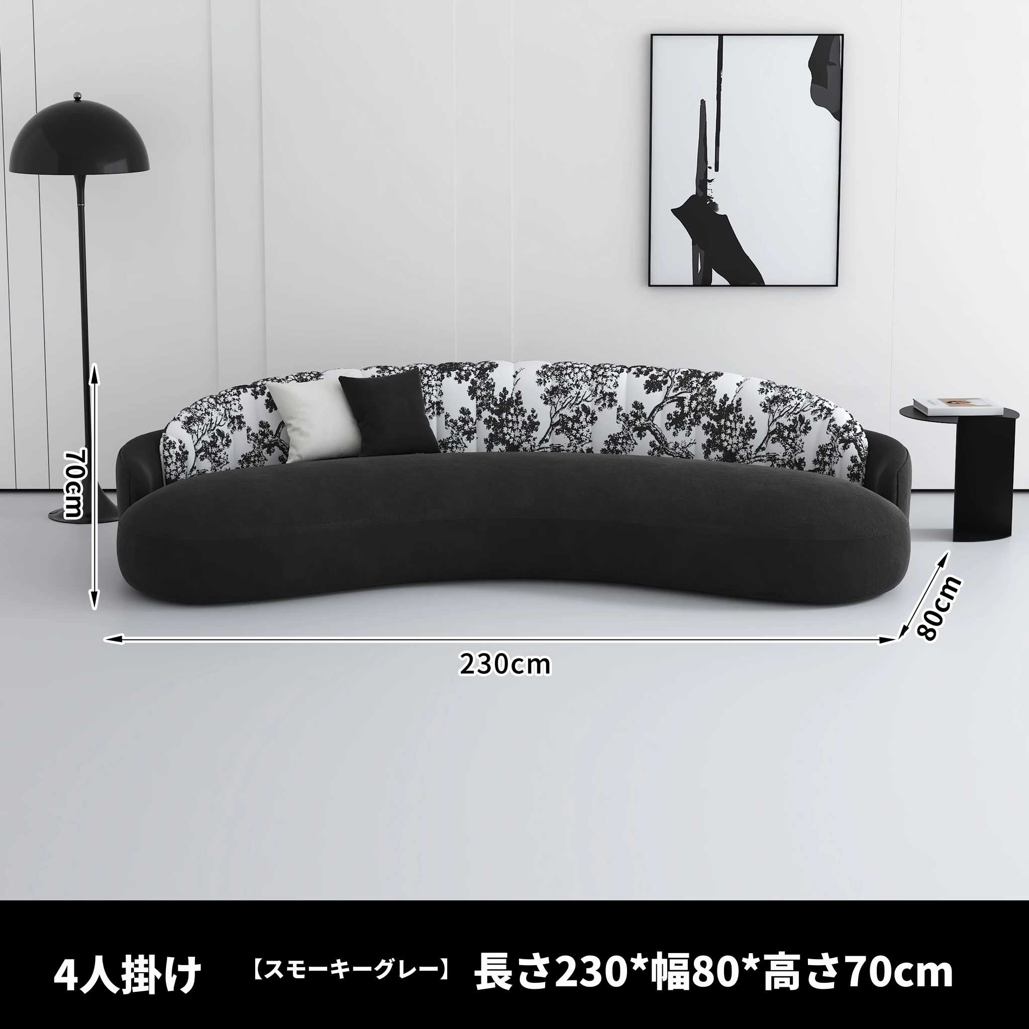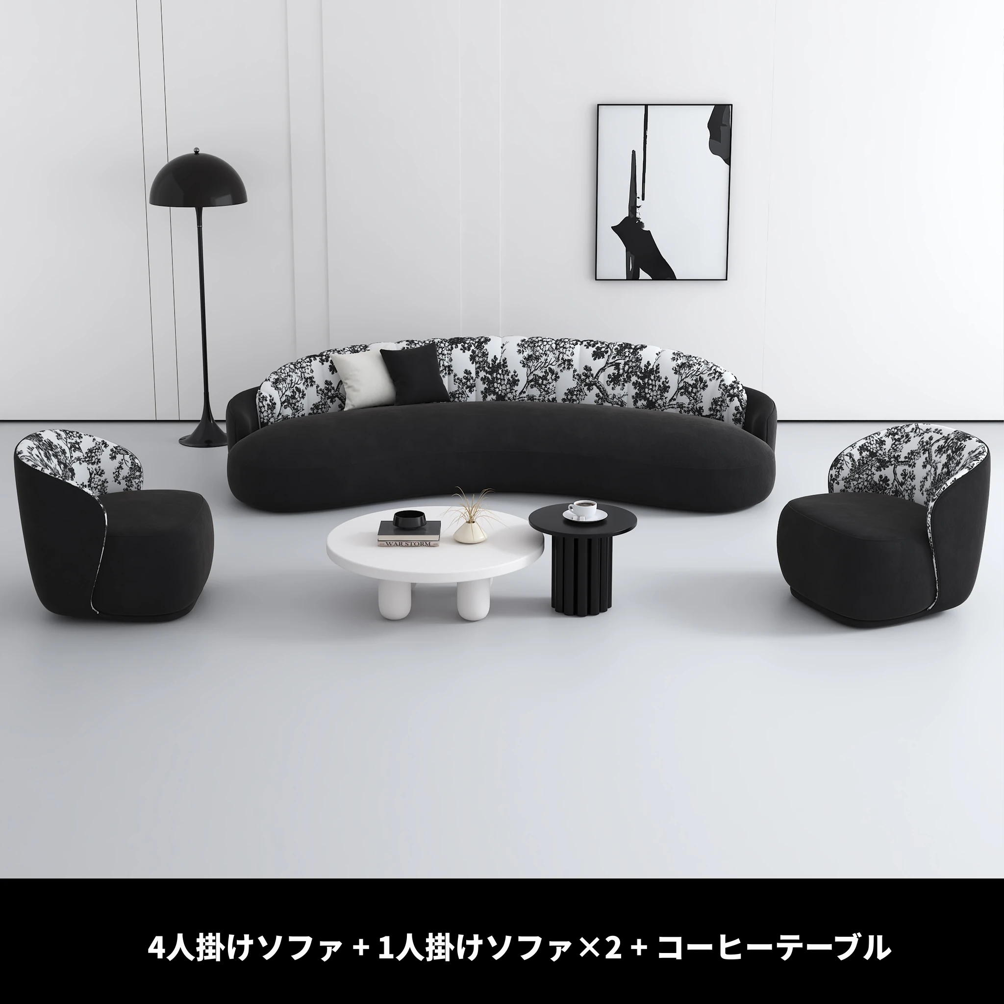 四人掛け230cm【ブラックベルベット+水墨の森の花模様】