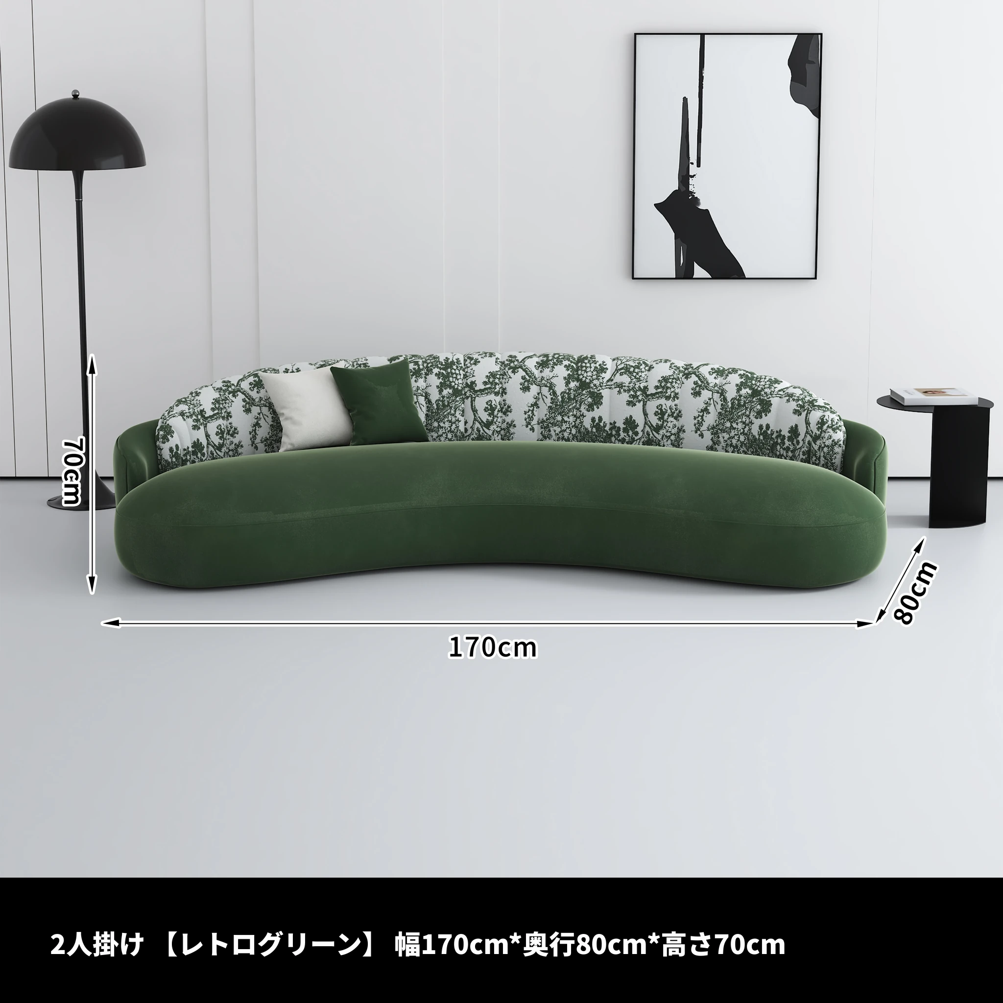 二人掛け170cm【グリーンベルベット+グリーンウメの花模様】