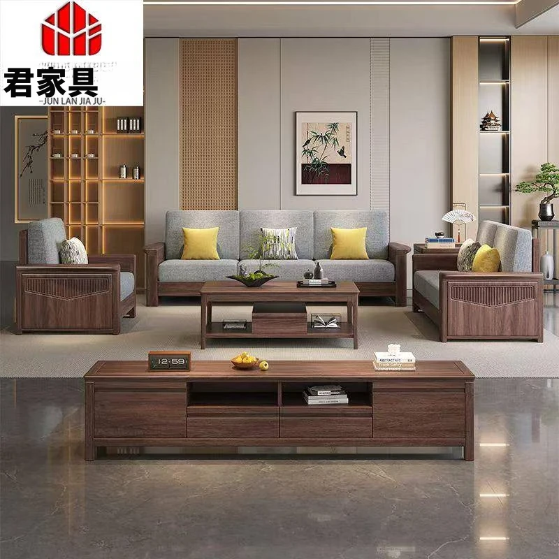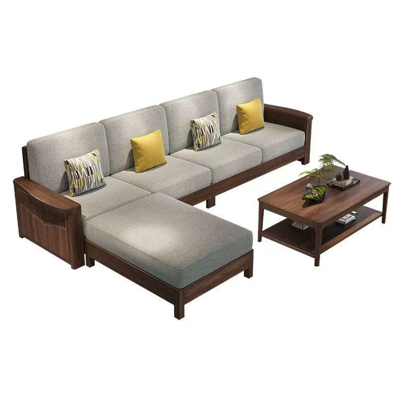 南米産ブラックウォールナットのソファ - モダンでシンプルな全木製、コンパクトな部屋に最適なL字型ソファセット!快適さとスタイルを兼ね備えたリビングの必需品。