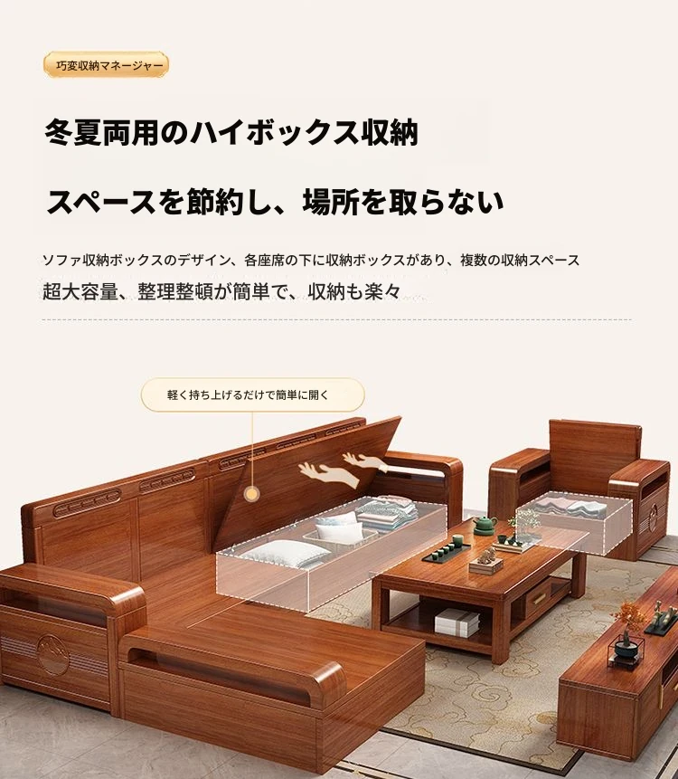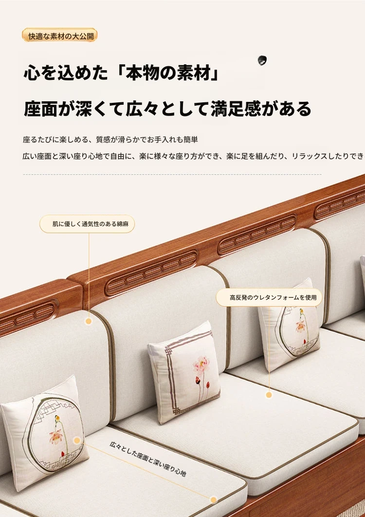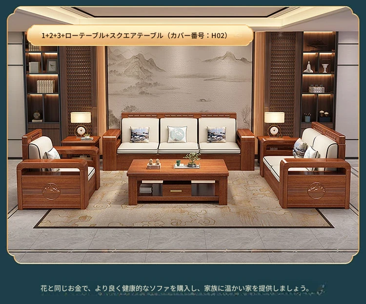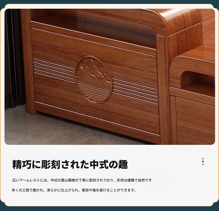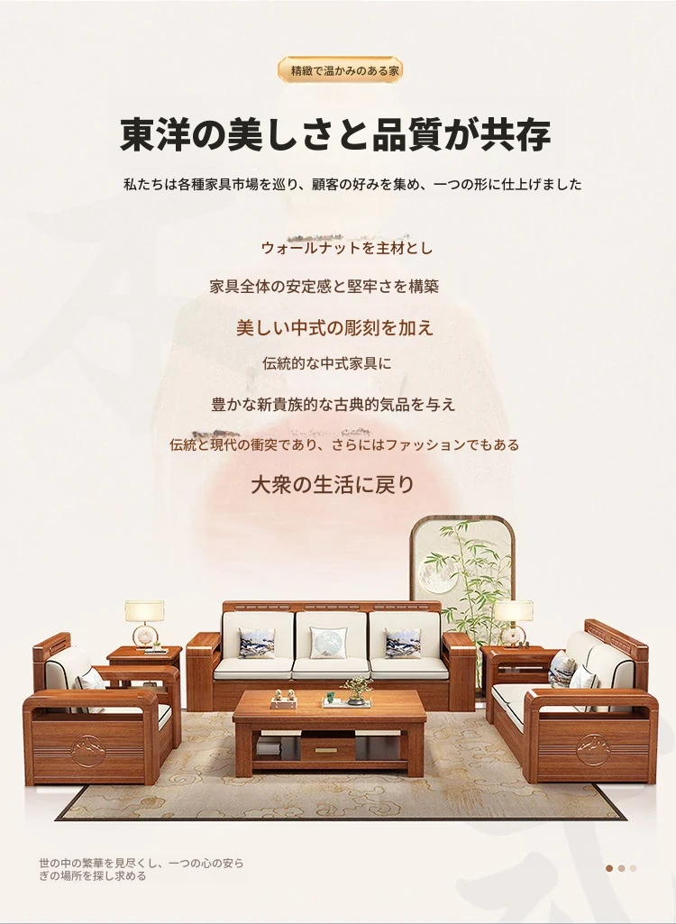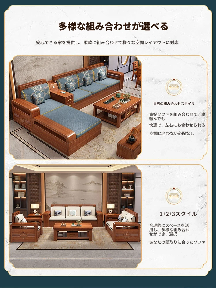 ウォールナット無垢材ソファセット|現代的なリビングにぴったり!冬夏兼用の小型中式彫刻家具で、経済的にも優れた選択肢です。快適な空間を演出し、スタイリッシュにお部屋を彩ります!