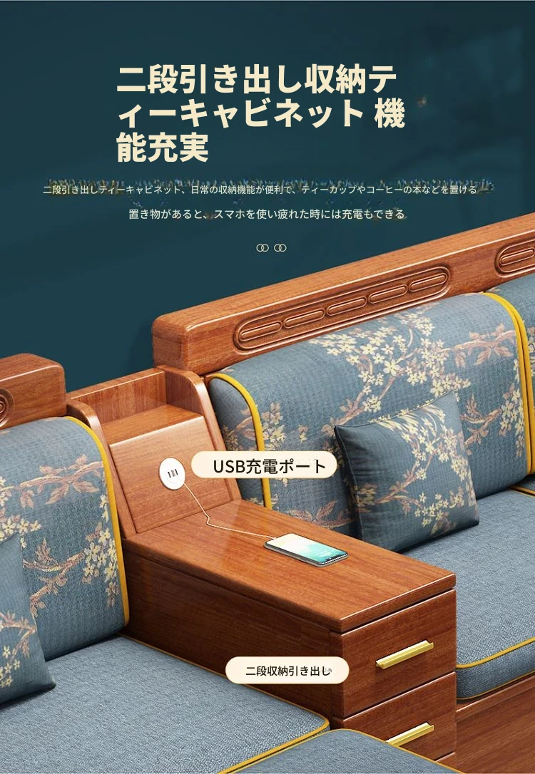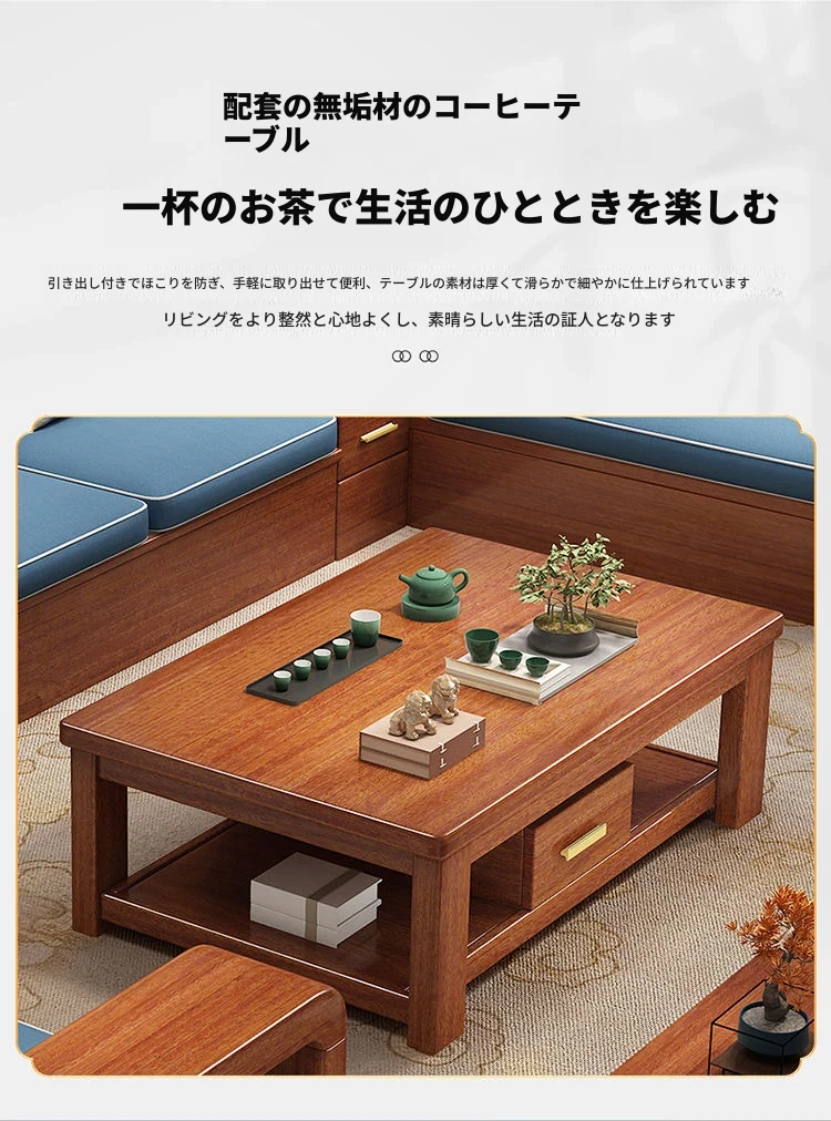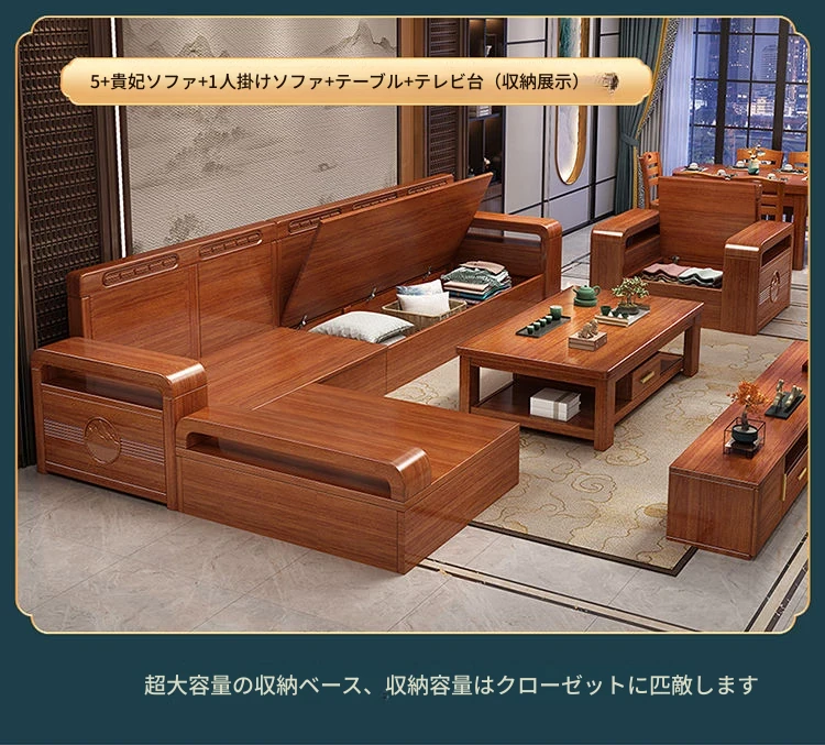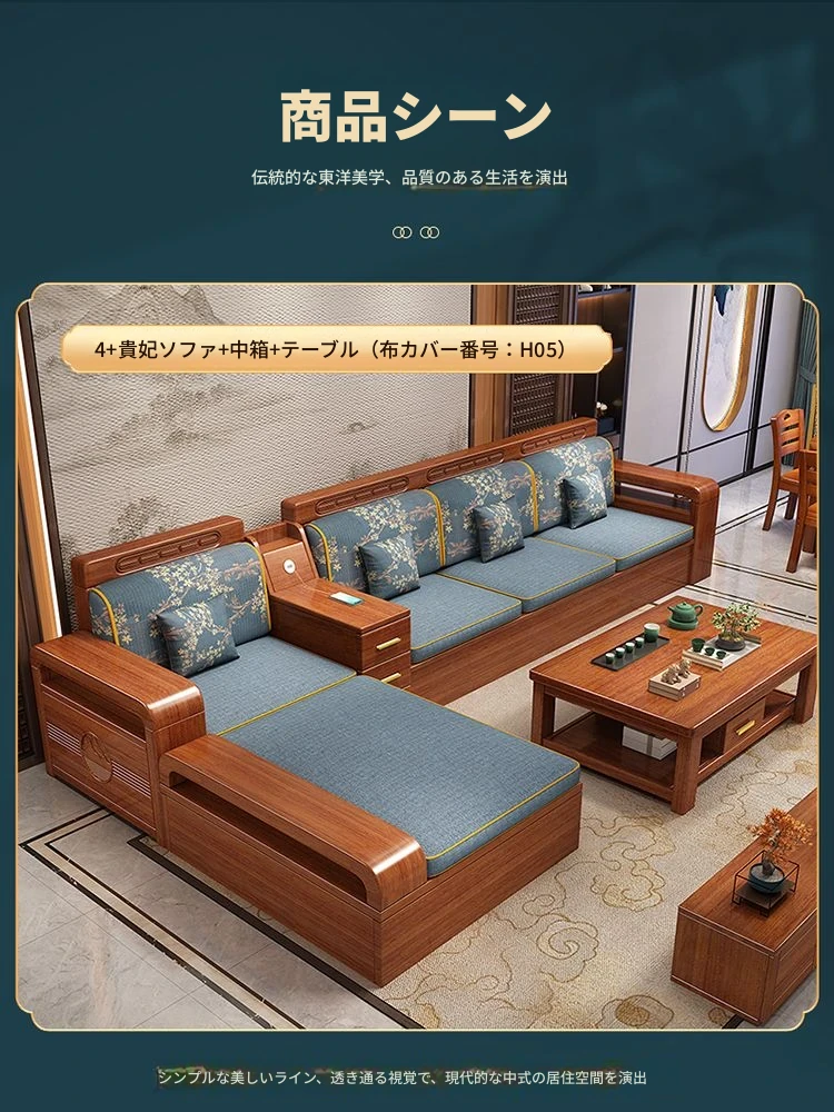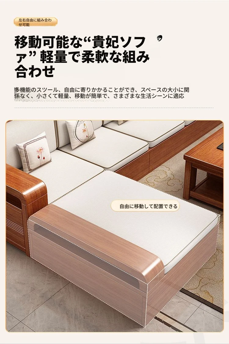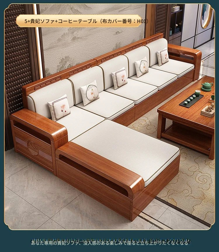 ウォールナット無垢材ソファセット|現代的なリビングにぴったり!冬夏兼用の小型中式彫刻家具で、経済的にも優れた選択肢です。快適な空間を演出し、スタイリッシュにお部屋を彩ります!